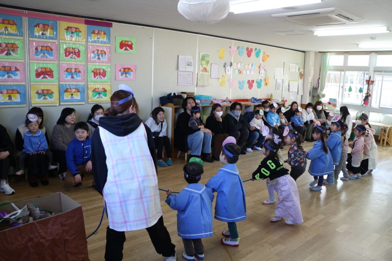 2月14日(土) 本日はひばりこども園にて、『保育参観』が行われました。 11月に予定をしていましたが運動会の関係で延期となり、皆様にはご理解をいただき本当にありがとうございました。 各学年ごとの活動となりましたので、製作をするクラス、劇をするクラス、運動をするクラス・・と様々でしたが、どのクラスも大好きなお家の方と一緒で、園児たちがとってもうれしそうな顔をしていました。お家の方にもきっと楽しんでいただけたのではないかと思っております。 大勢の方に参加していただけたので、にぎやかな保育参観になって本当によかったです。 本日はご参加ありがとうございました。 今年度も残りわずかとなりましたが、引き続きよろしくお願いいたします。