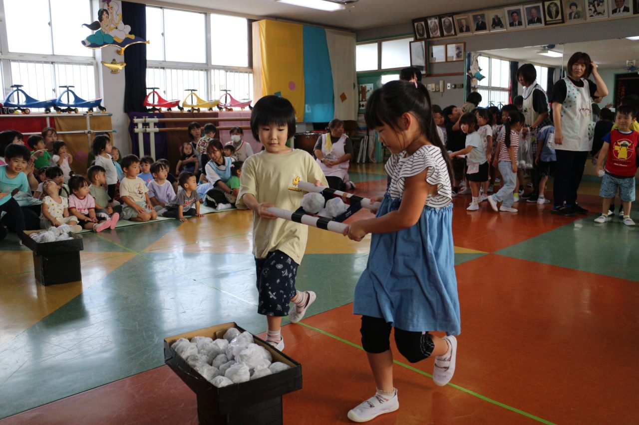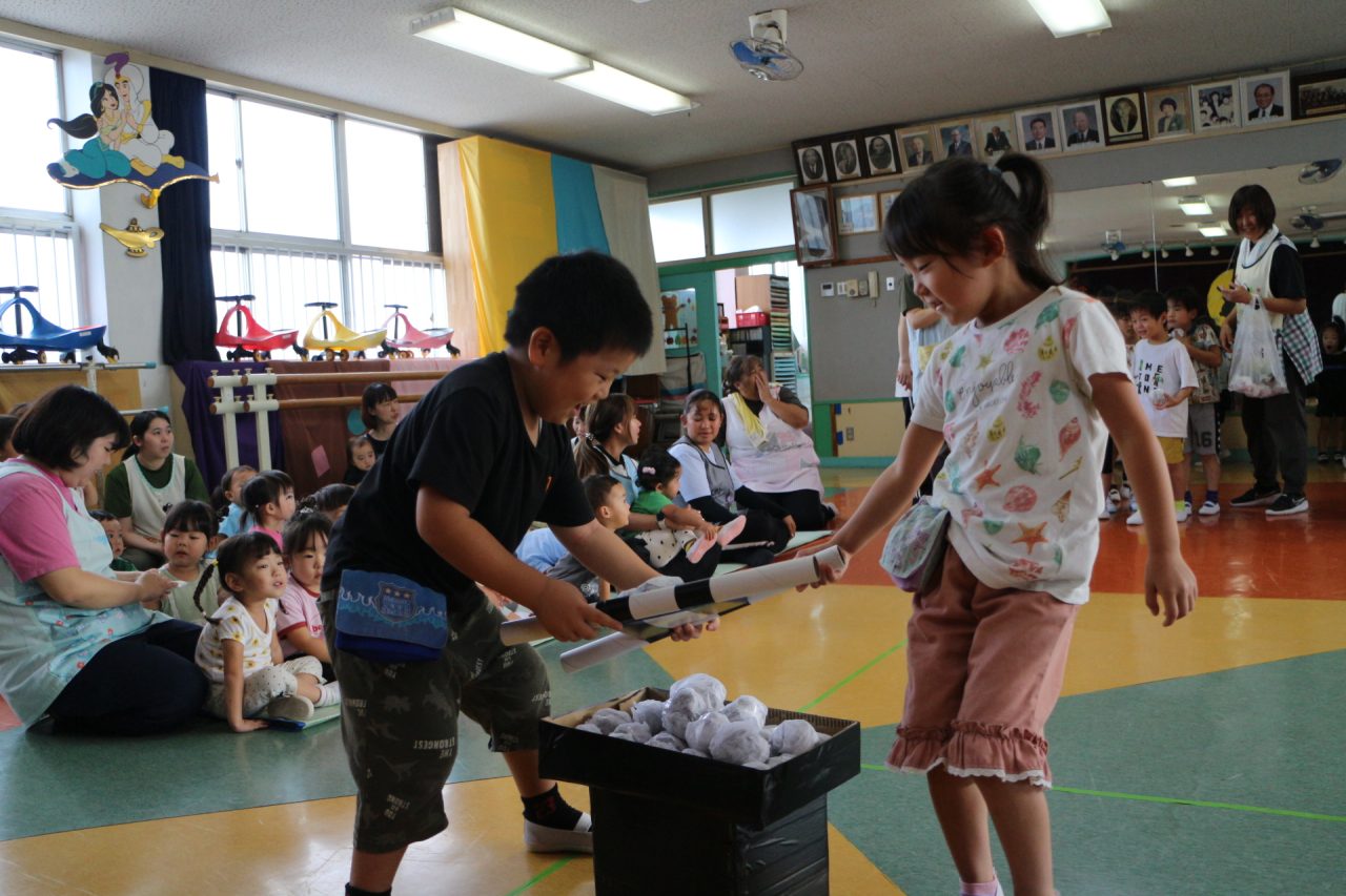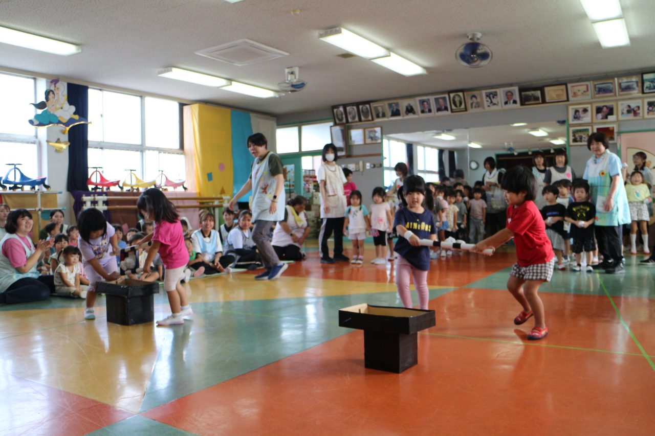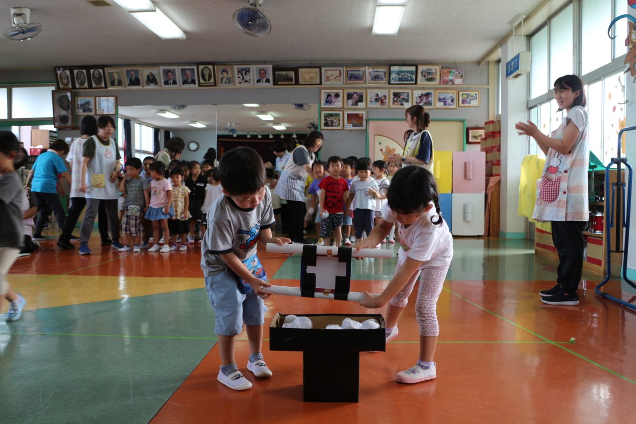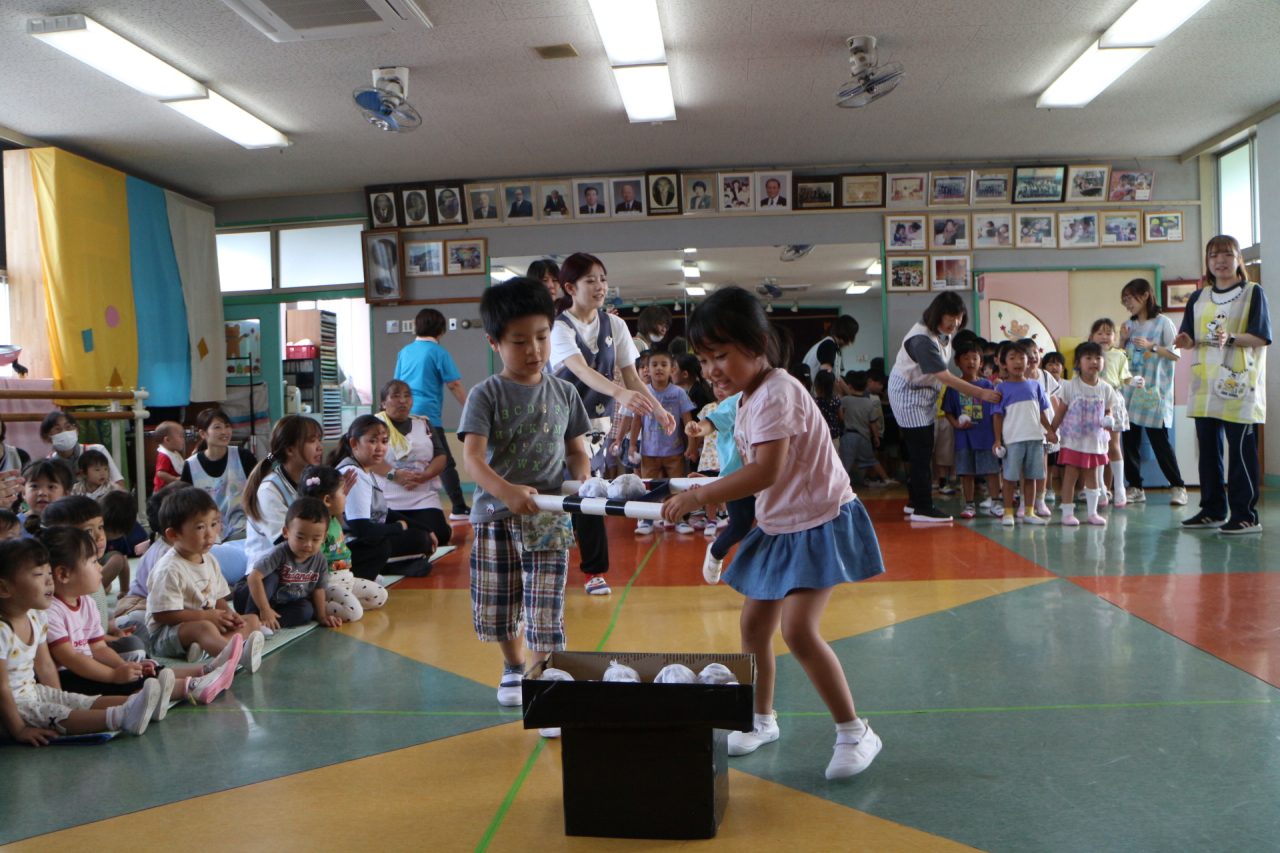 職員による出し物を見たり、歌をうたったり、ゲームもあって盛り沢山な集会となりました。