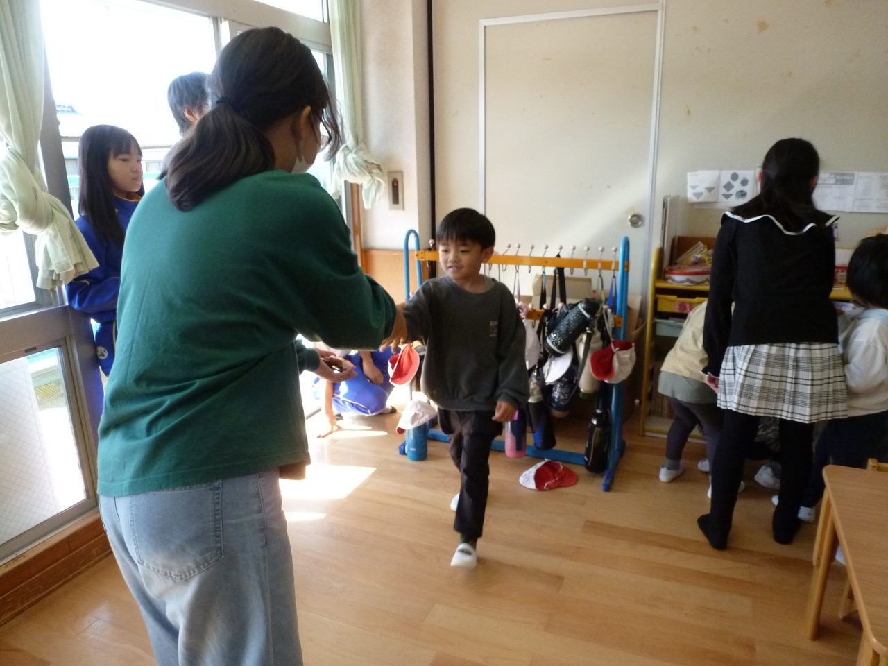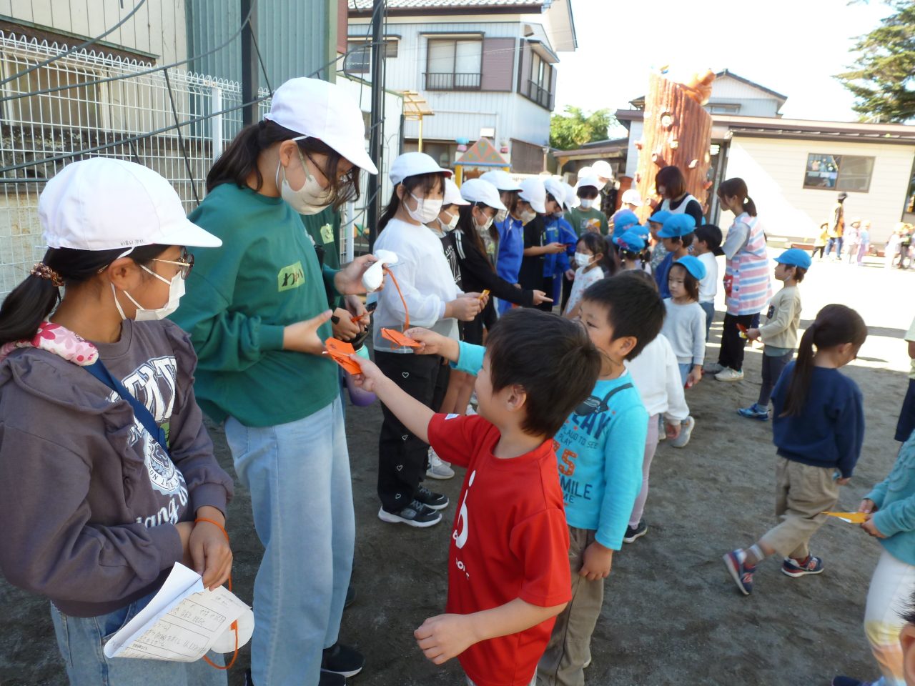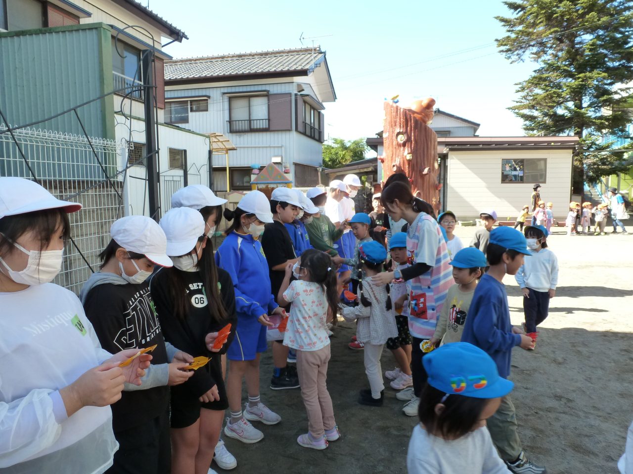 最後に子どもたちもパンプキンのおりがみをプレゼントをすることができ「みんなが1年生になったときの6年生のお兄さんお姉さんたちだよ」と話を聞いて「ありがとう」とご挨拶することができました👋