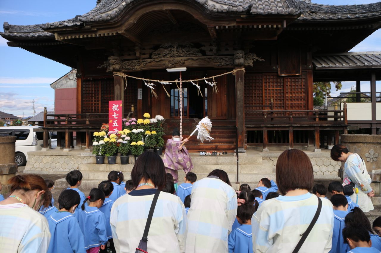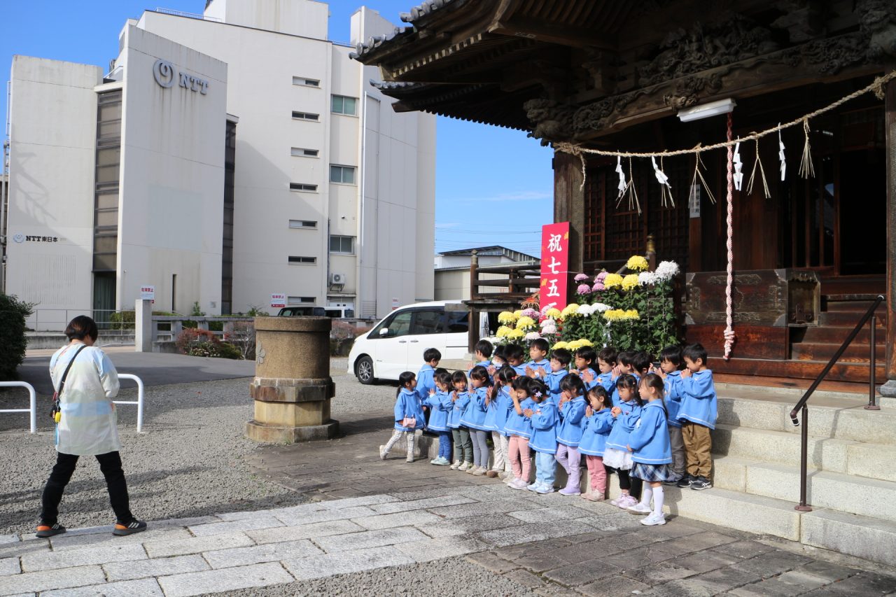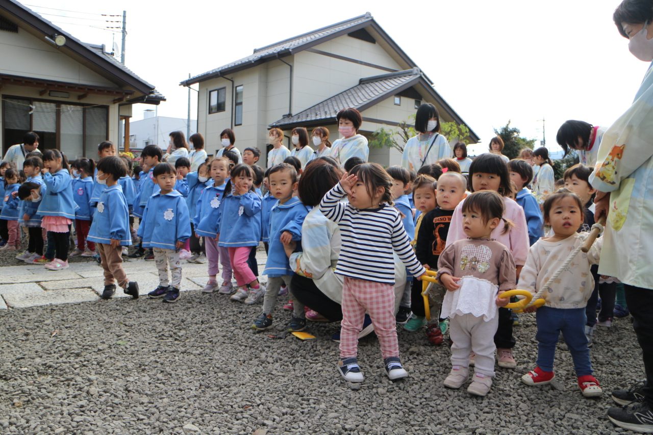七五三詣りでは4・5歳児の代表が本殿に上がらせてもらい、太鼓を叩き、ご祈祷をしてもらい、「これからも健やかに過ごせますように」とお願いをしてきました。