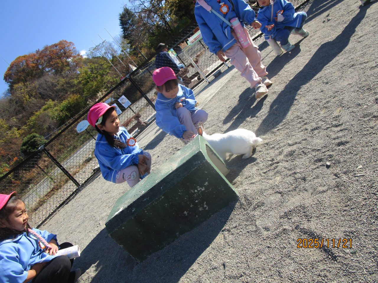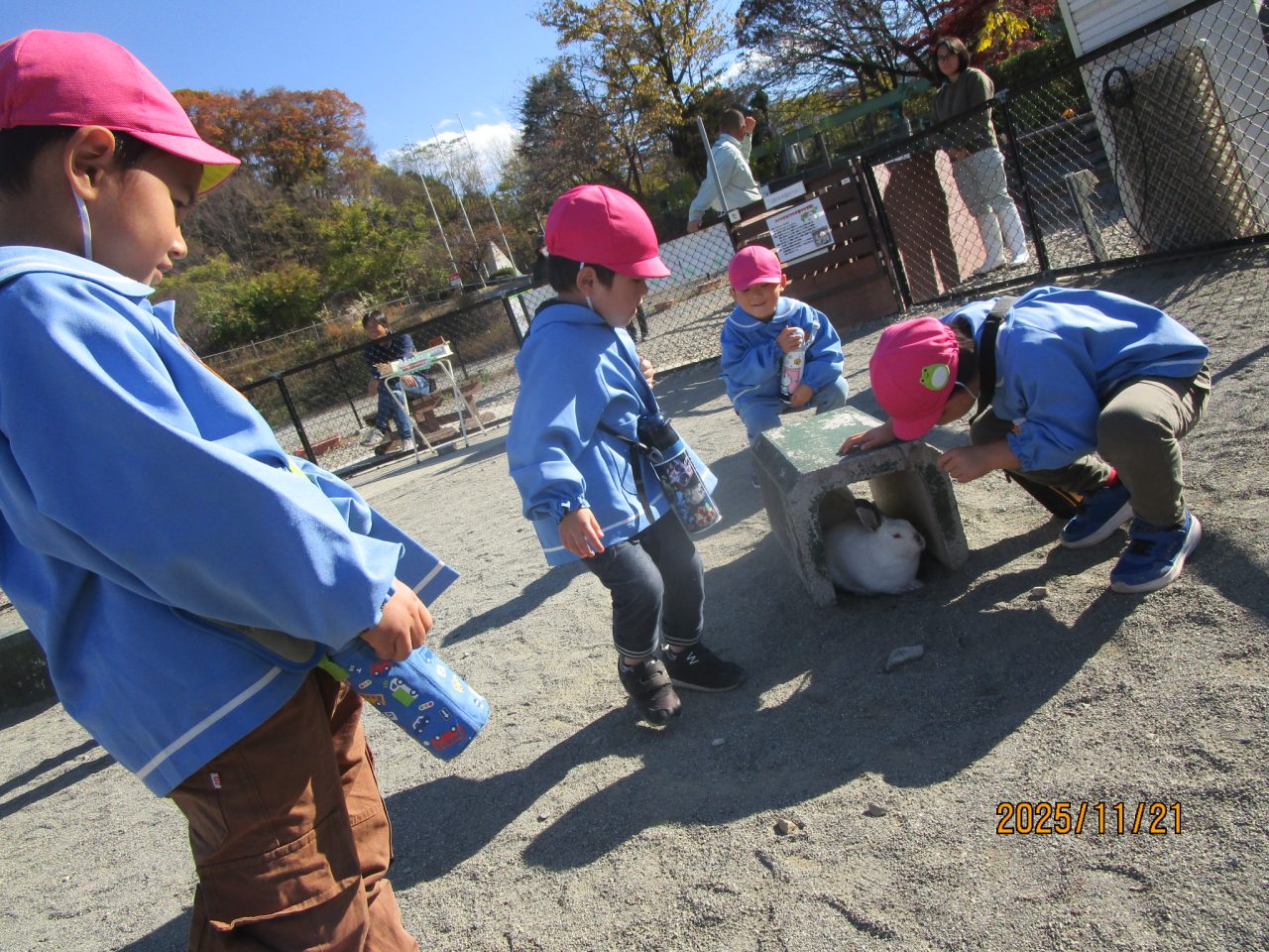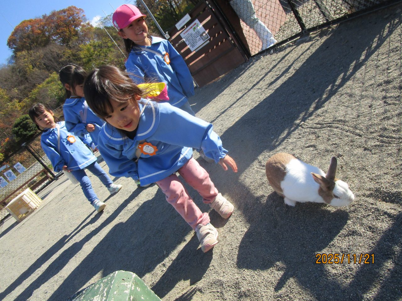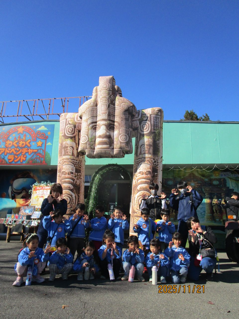 11月21日(金)待ちに待った群馬サファリパーク🐯へ行ってきました。モルモット🐭のふれあい体験では『思いやりの心』を学んでいざ園バスで園内へ。🦒きりんやさい(3500㎏あるそうです‼)水牛、今話題の🐻くまをそっと見たり、🐒サルの親子に癒されたり・・・ウオーキングゾーンでは、ニホンオオカミ、ホワイトタイガー(〇美先生と同い年⁉)、しかなどのつのをさわったりして、再びバスに乗ってラクダやバク、象を見て猛獣ゾーへ・・・🦁ライオンのえさやりをみて、まるでライオンキングのシンバとナラみたいなライオンの子供たちにキュン💕として、お弁当へ。愛情たっぷりのお弁当🍱を嬉しそうに「見てみて~😊」と見せ合いながら食べていました。