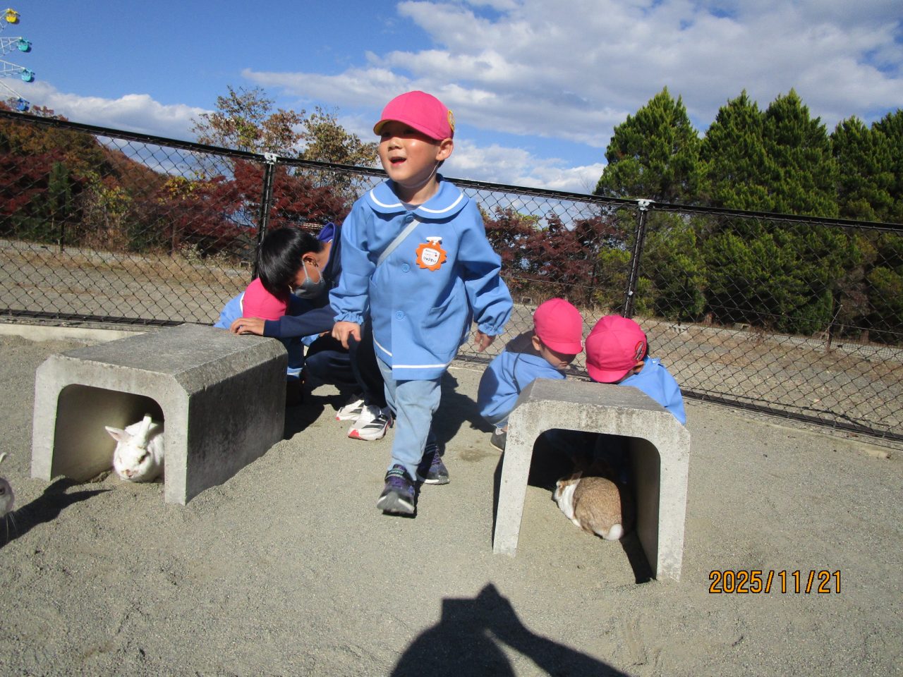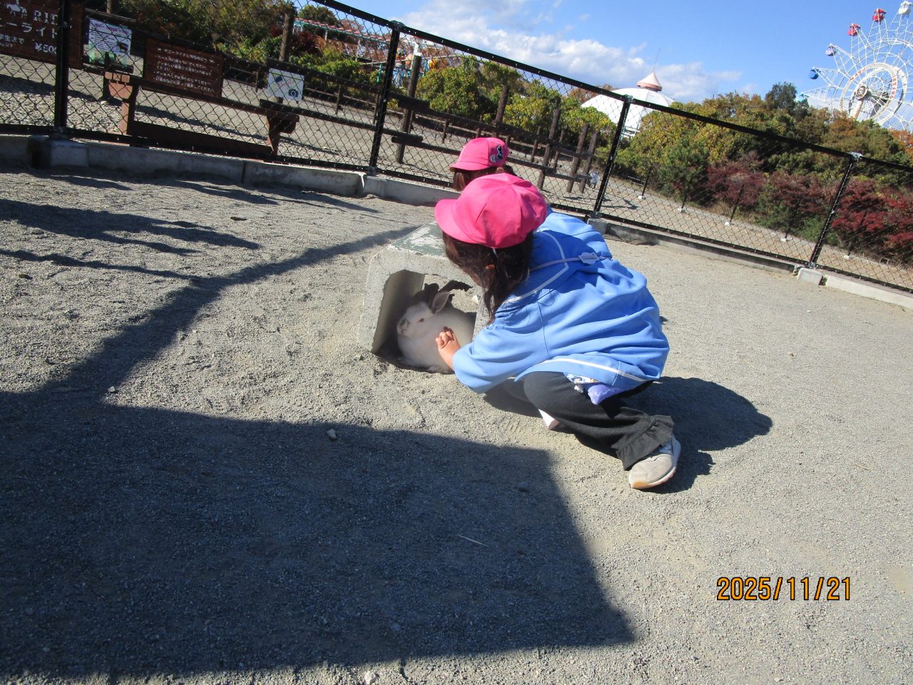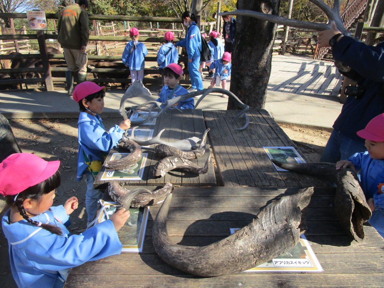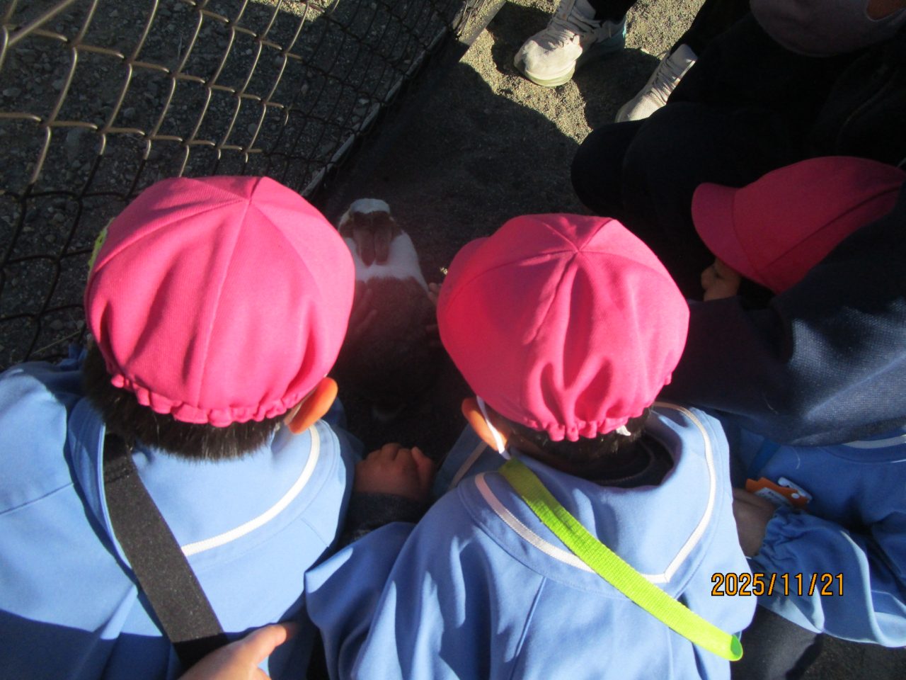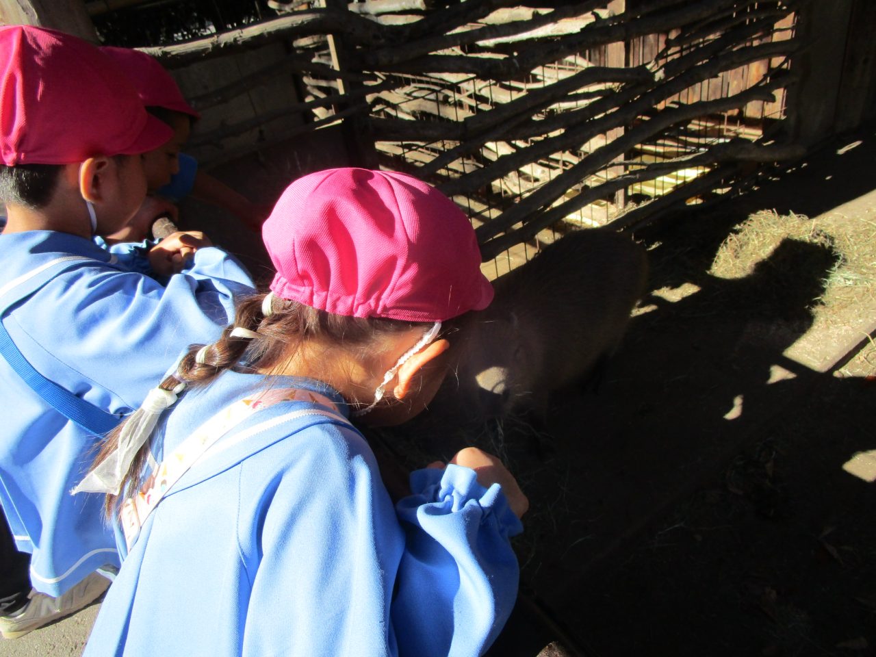 11月21日(金)待ちに待った群馬サファリパーク🐯へ行ってきました。モルモット🐭のふれあい体験では『思いやりの心』を学んでいざ園バスで園内へ。🦒きりんやさい(3500㎏あるそうです‼)水牛、今話題の🐻くまをそっと見たり、🐒サルの親子に癒されたり・・・ウオーキングゾーンでは、ニホンオオカミ、ホワイトタイガー(〇美先生と同い年⁉)、しかなどのつのをさわったりして、再びバスに乗ってラクダやバク、象を見て猛獣ゾーへ・・・🦁ライオンのえさやりをみて、まるでライオンキングのシンバとナラみたいなライオンの子供たちにキュン💕として、お弁当へ。愛情たっぷりのお弁当🍱を嬉しそうに「見てみて~😊」と見せ合いながら食べていました。