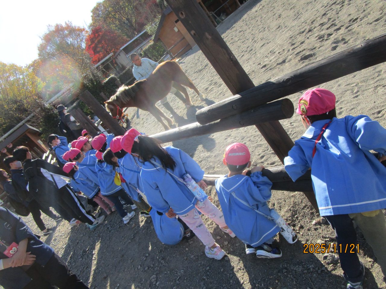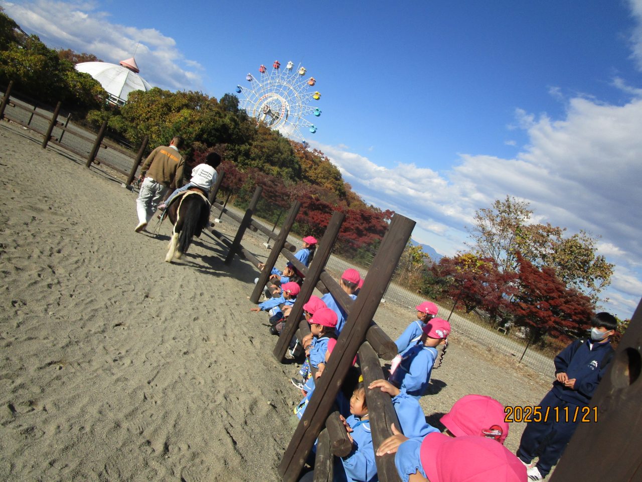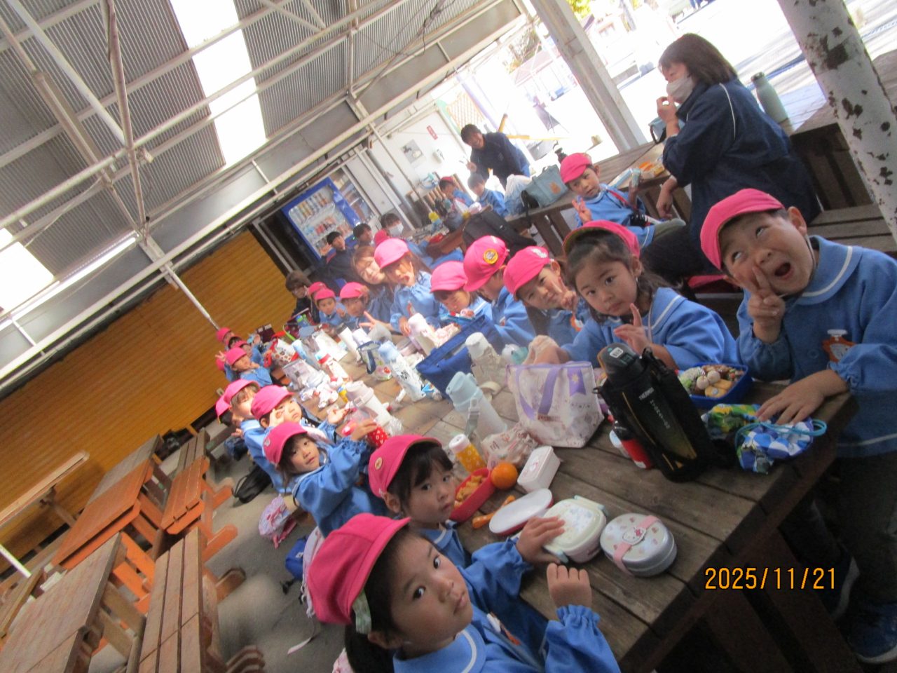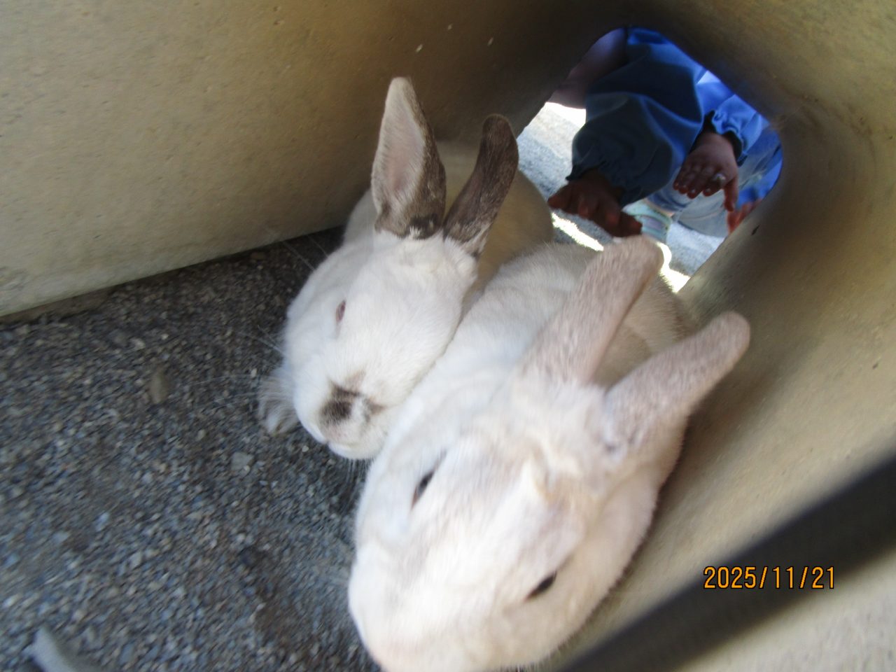11月21日(金)待ちに待った群馬サファリパーク🐯へ行ってきました。モルモット🐭のふれあい体験では『思いやりの心』を学んでいざ園バスで園内へ。🦒きりんやさい(3500㎏あるそうです‼)水牛、今話題の🐻くまをそっと見たり、🐒サルの親子に癒されたり・・・ウオーキングゾーンでは、ニホンオオカミ、ホワイトタイガー(〇美先生と同い年⁉)、しかなどのつのをさわったりして、再びバスに乗ってラクダやバク、象を見て猛獣ゾーへ・・・🦁ライオンのえさやりをみて、まるでライオンキングのシンバとナラみたいなライオンの子供たちにキュン💕として、お弁当へ。愛情たっぷりのお弁当🍱を嬉しそうに「見てみて~😊」と見せ合いながら食べていました。