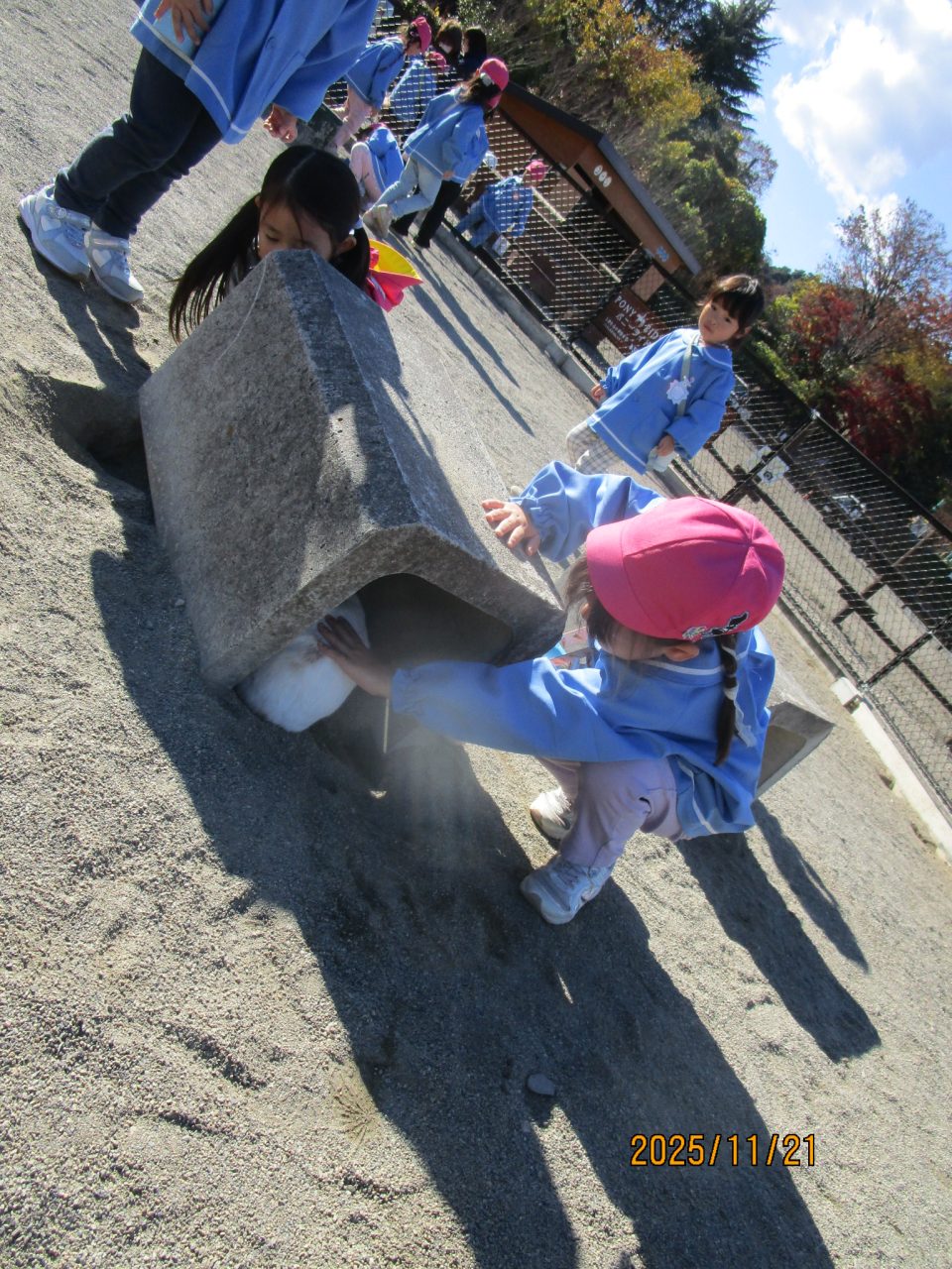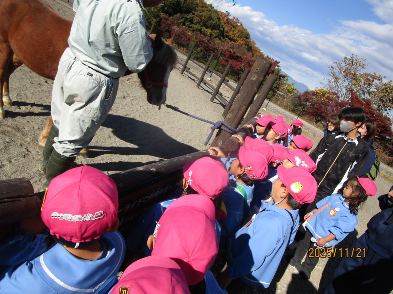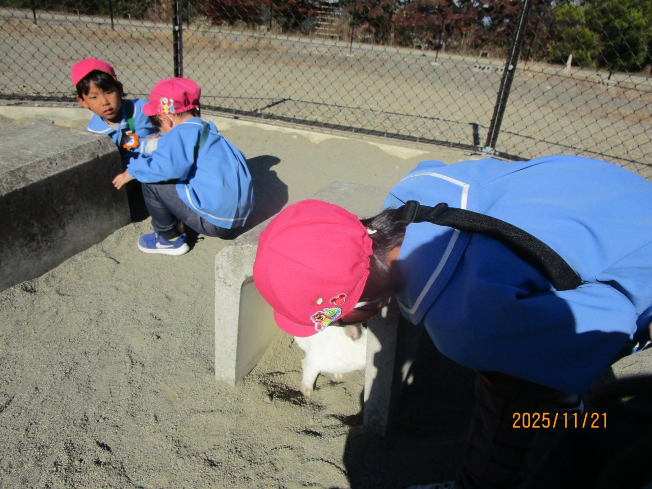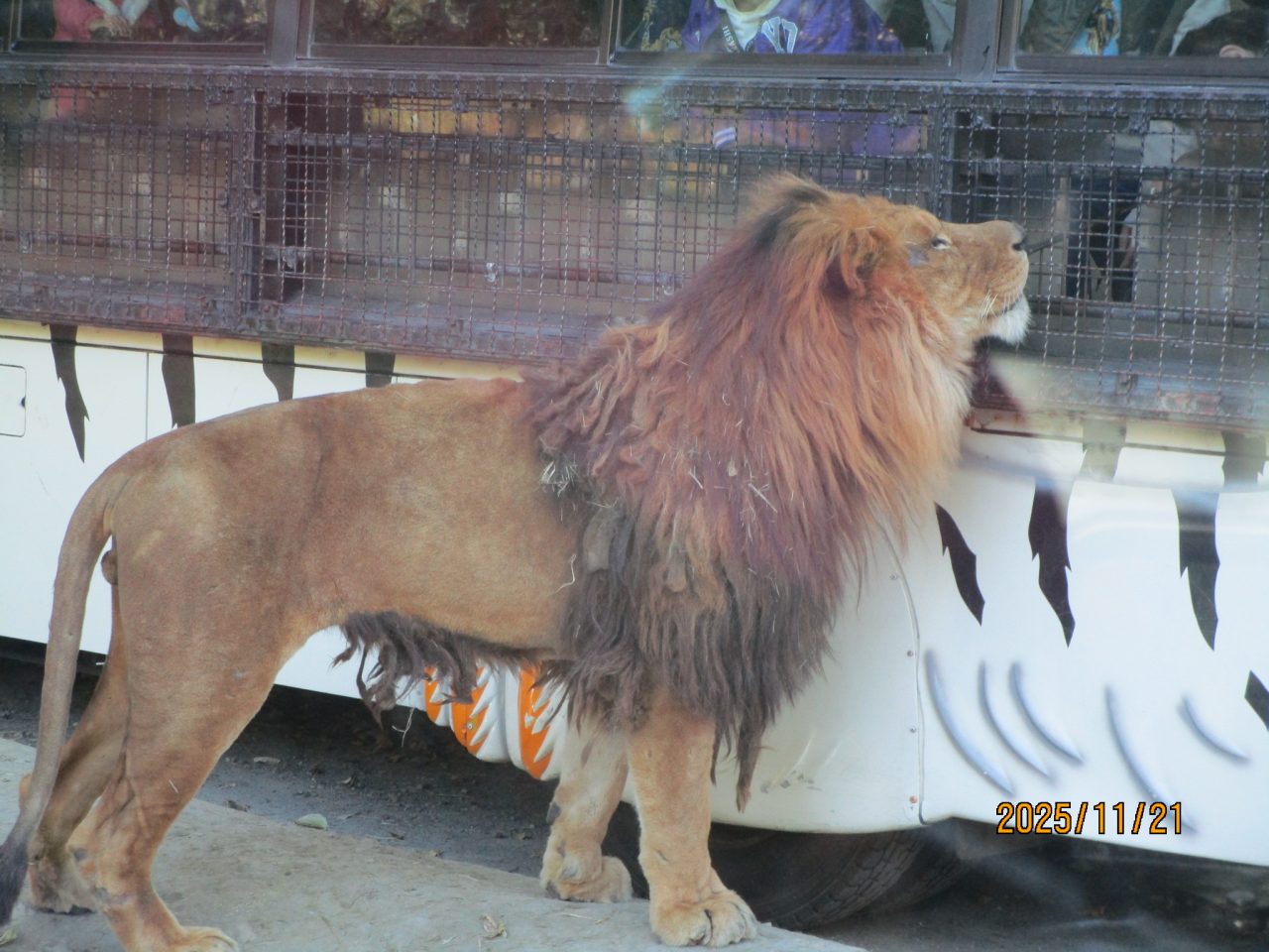 11月21日(金)待ちに待った群馬サファリパーク🐯へ行ってきました。モルモット🐭のふれあい体験では『思いやりの心』を学んでいざ園バスで園内へ。🦒きりんやさい(3500㎏あるそうです‼)水牛、今話題の🐻くまをそっと見たり、🐒サルの親子に癒されたり・・・ウオーキングゾーンでは、ニホンオオカミ、ホワイトタイガー(〇美先生と同い年⁉)、しかなどのつのをさわったりして、再びバスに乗ってラクダやバク、象を見て猛獣ゾーへ・・・🦁ライオンのえさやりをみて、まるでライオンキングのシンバとナラみたいなライオンの子供たちにキュン💕として、お弁当へ。愛情たっぷりのお弁当🍱を嬉しそうに「見てみて~😊」と見せ合いながら食べていました。
