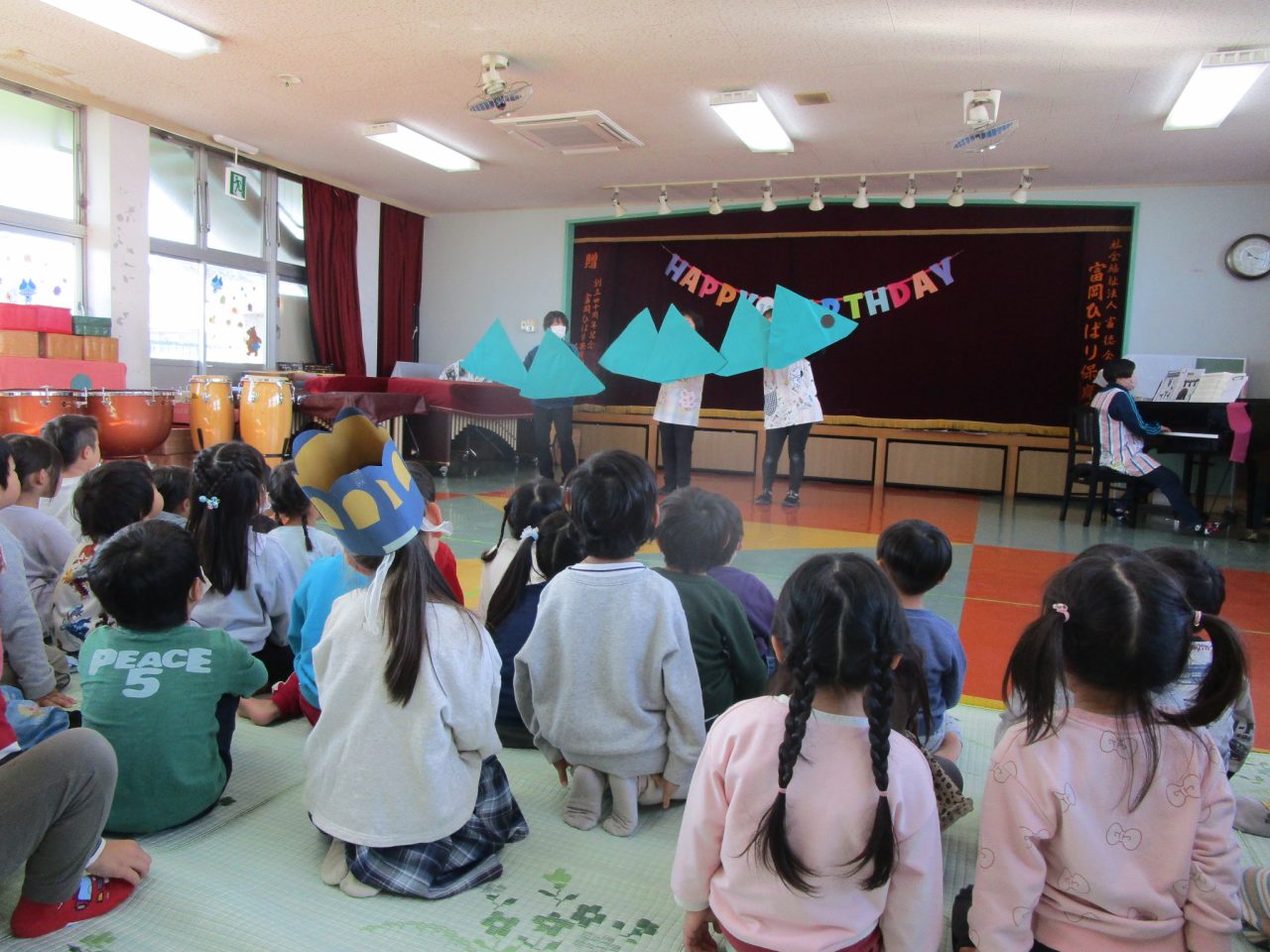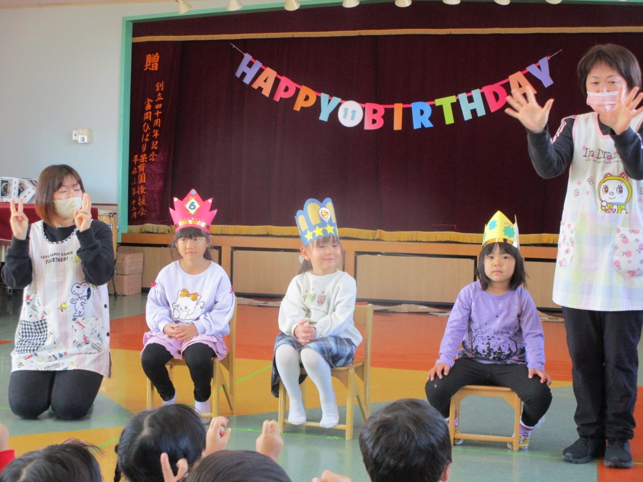 11月28日(金)以上児の11月のお誕生日児は5名でしたが、お休みのお友達もいたので今日は3名のお祝いをしました!
