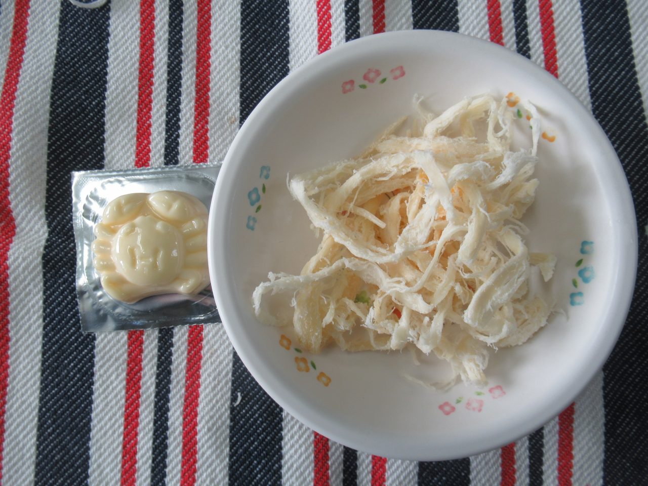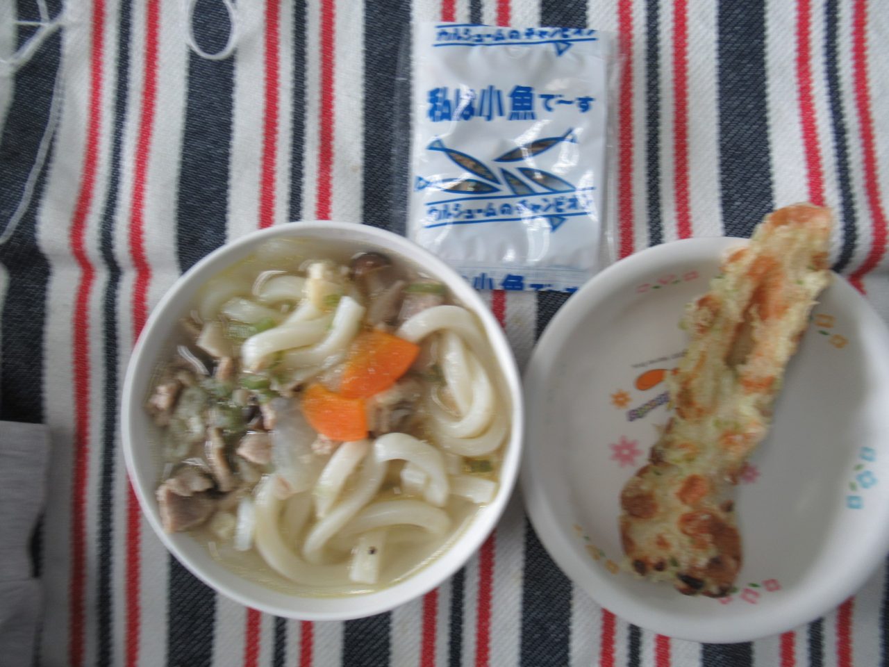 お昼・・・塩ちゃんこうどん/ちくわの磯辺揚げ/小魚