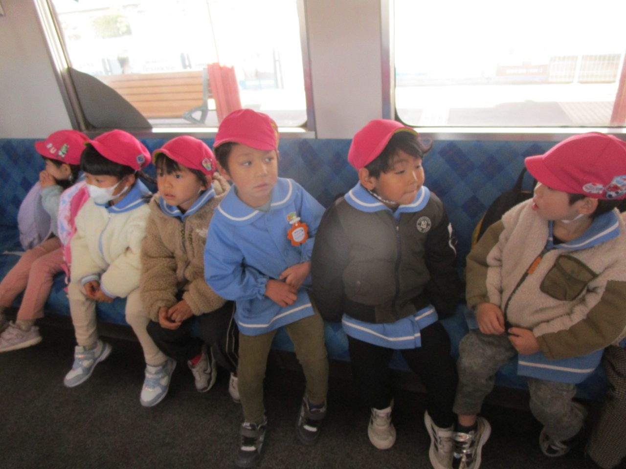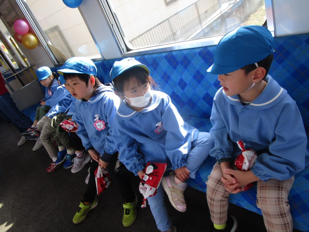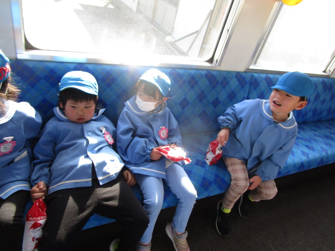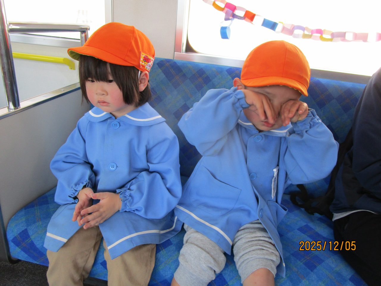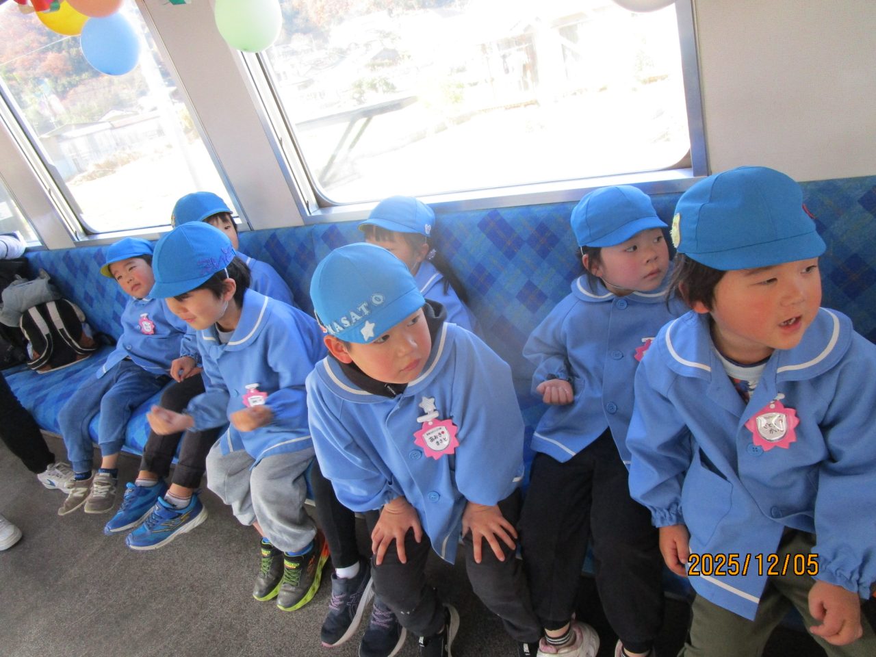 駅の中や外でそれぞれお昼(おにぎりとから揚げ)とサンタさんからのプレゼントのお菓子を食べて帰りの電車とバスに乗って帰ってきました。電車内では【たっていられるかな?}ゲームをすると力尽きたようにお休みモードへ💤一番最後に『虹』を大合唱して富岡駅に到着しました!!