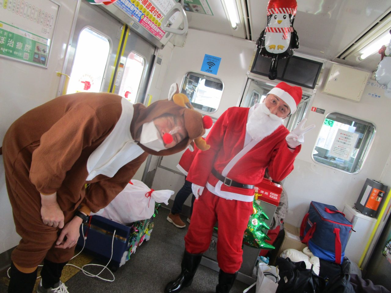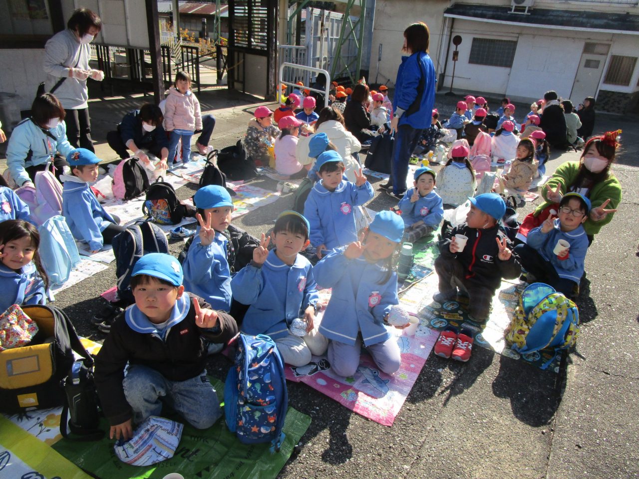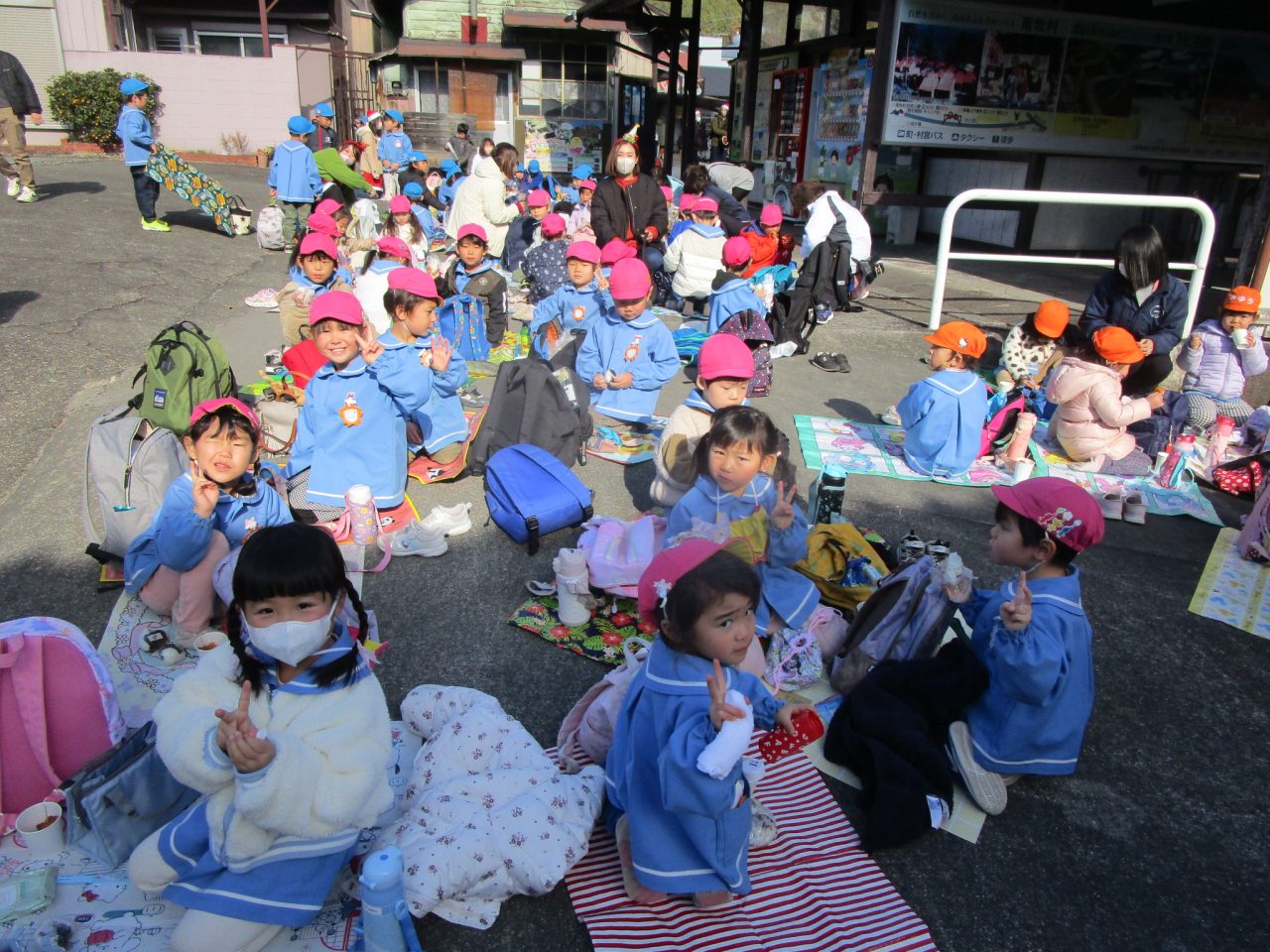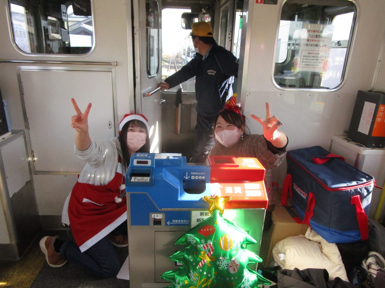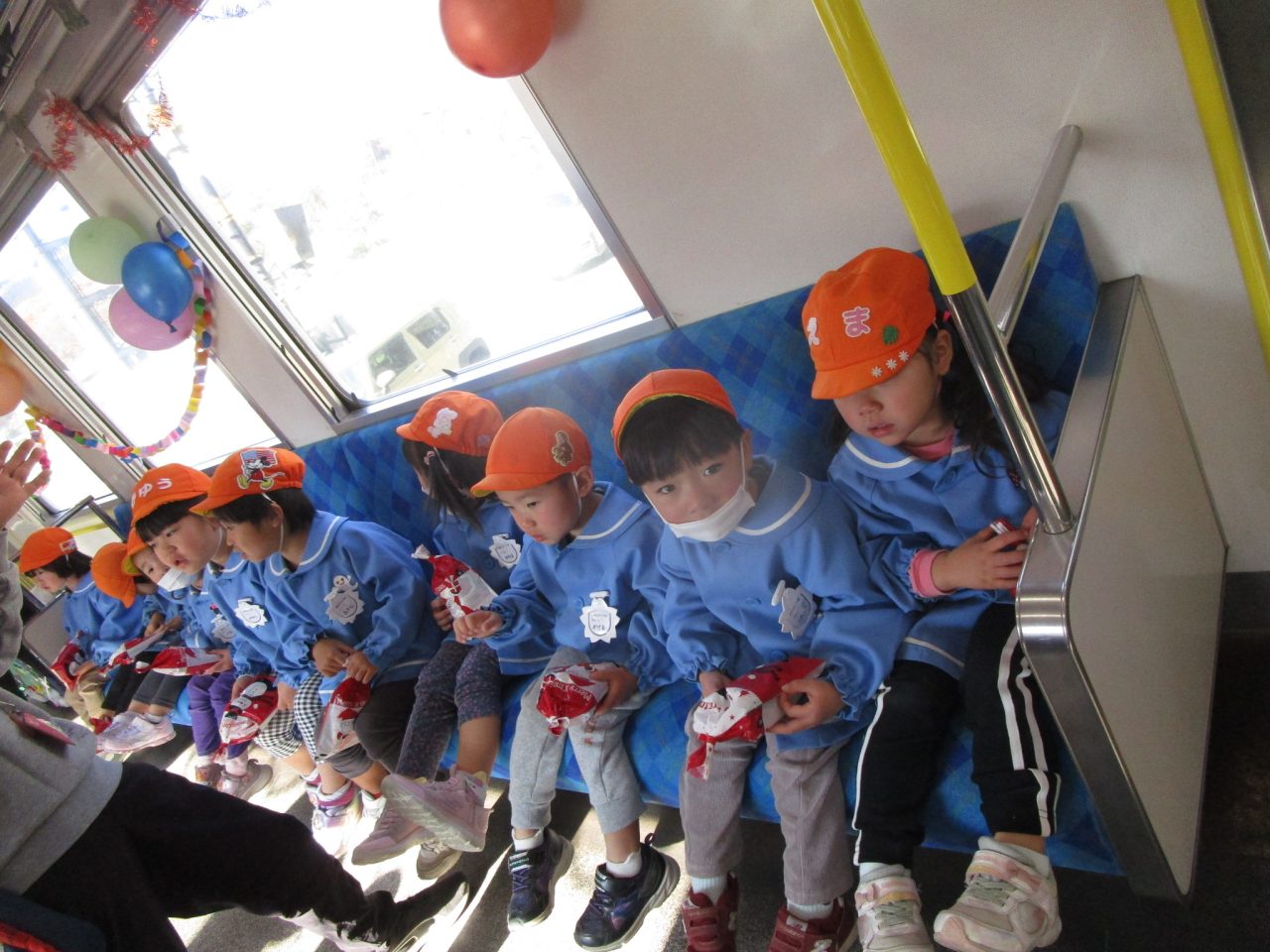 駅の中や外でそれぞれお昼(おにぎりとから揚げ)とサンタさんからのプレゼントのお菓子を食べて帰りの電車とバスに乗って帰ってきました。電車内では【たっていられるかな?}ゲームをすると力尽きたようにお休みモードへ💤一番最後に『虹』を大合唱して富岡駅に到着しました!!