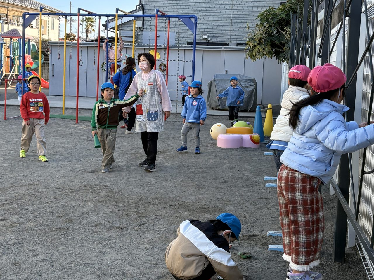 12月16日(火)みんなが元気よく「おはようー!」と登園してくると、寒さにも負けずお外遊びが始まります!