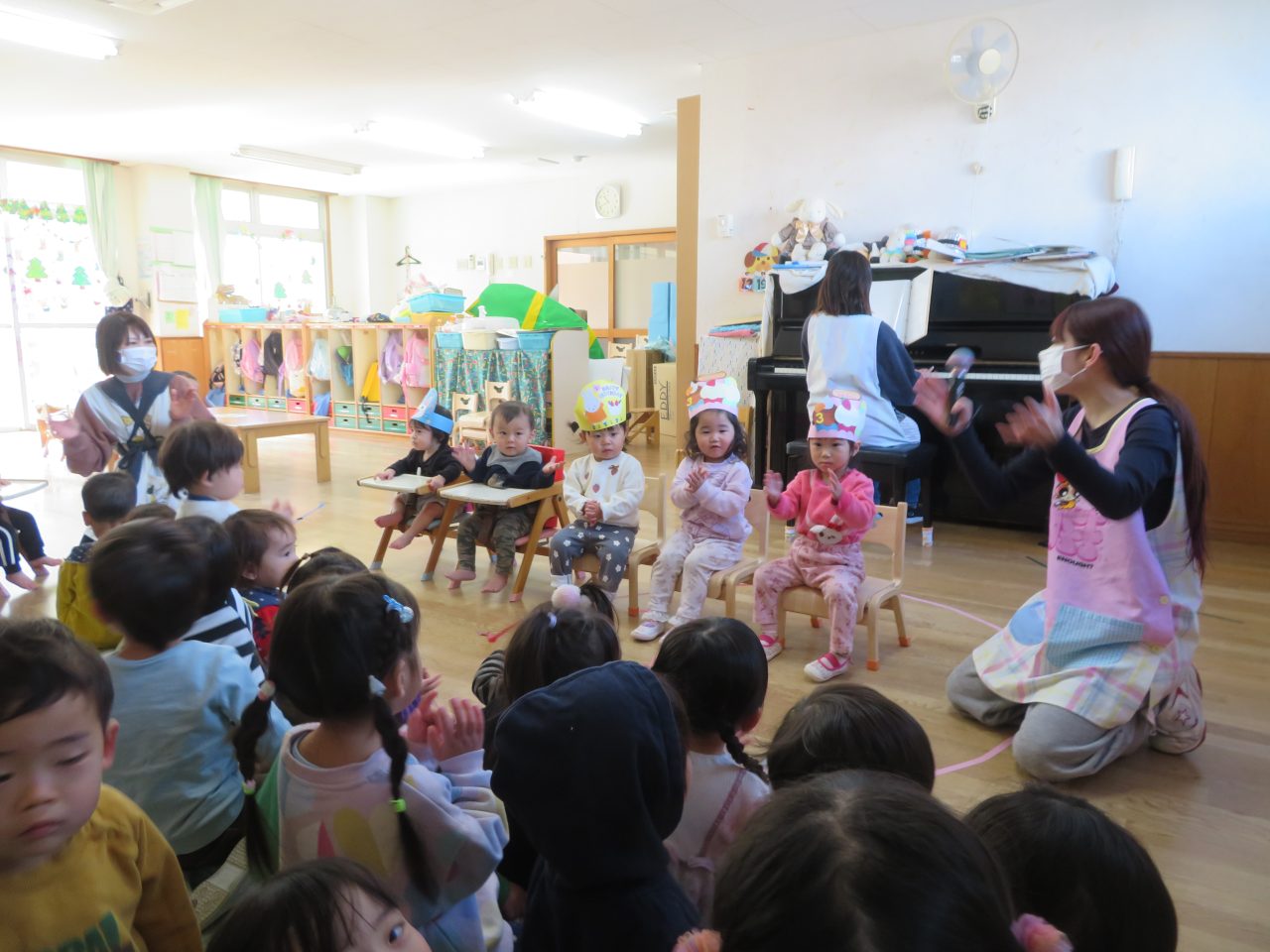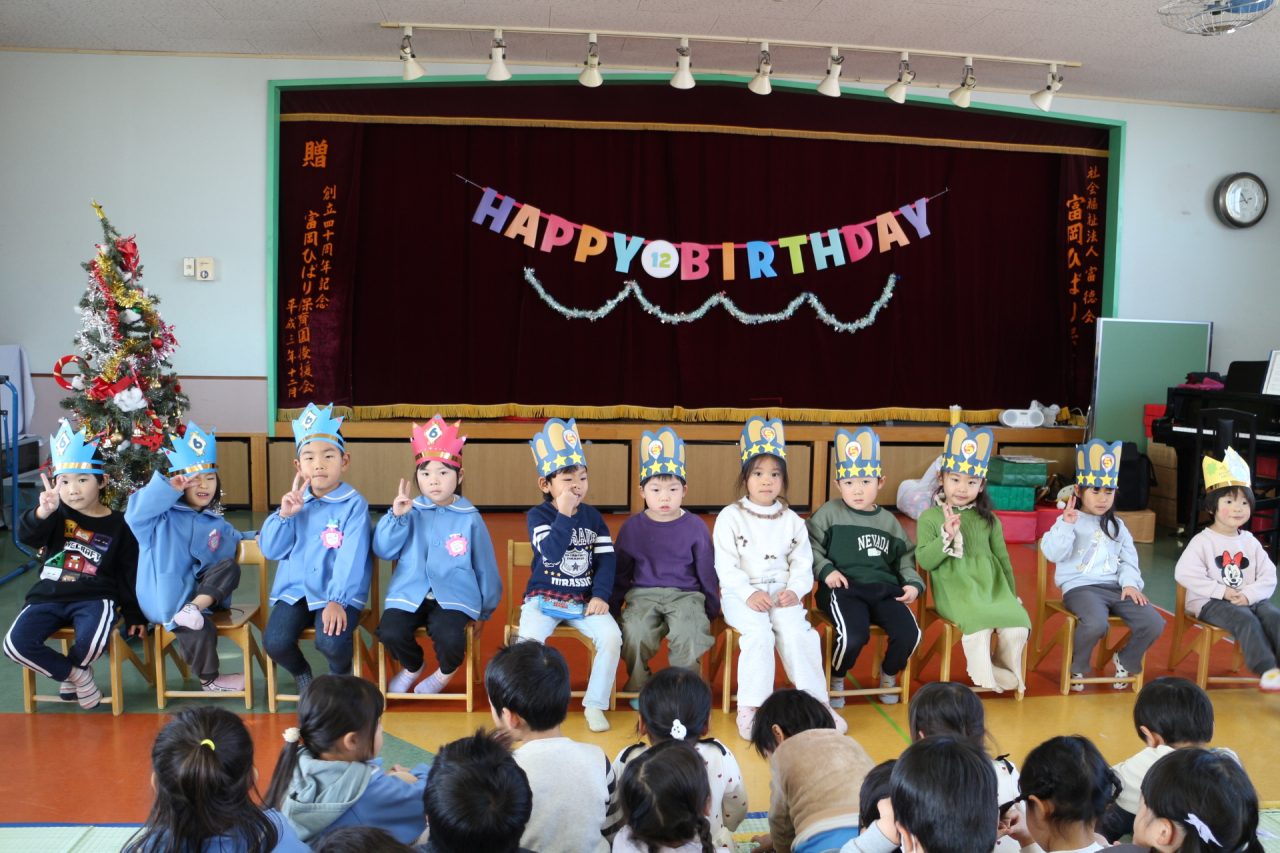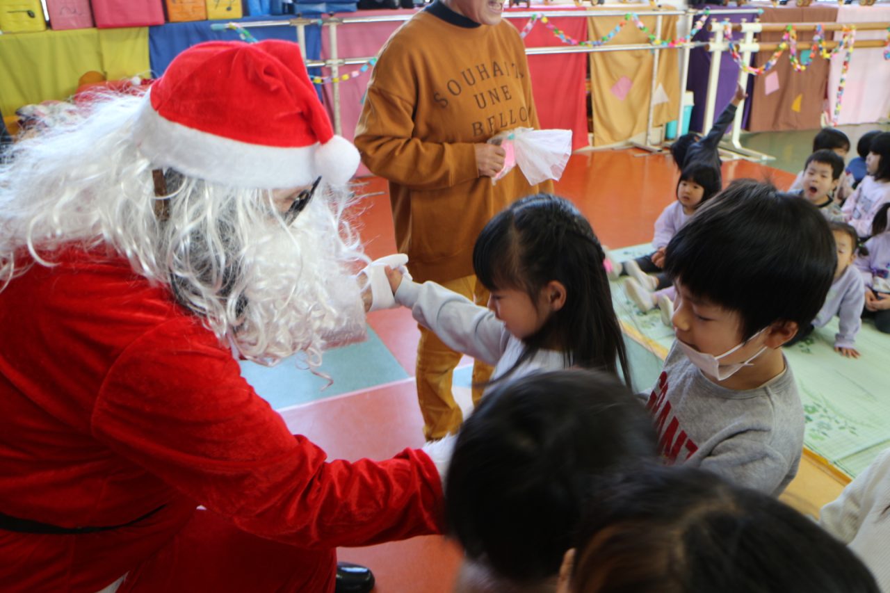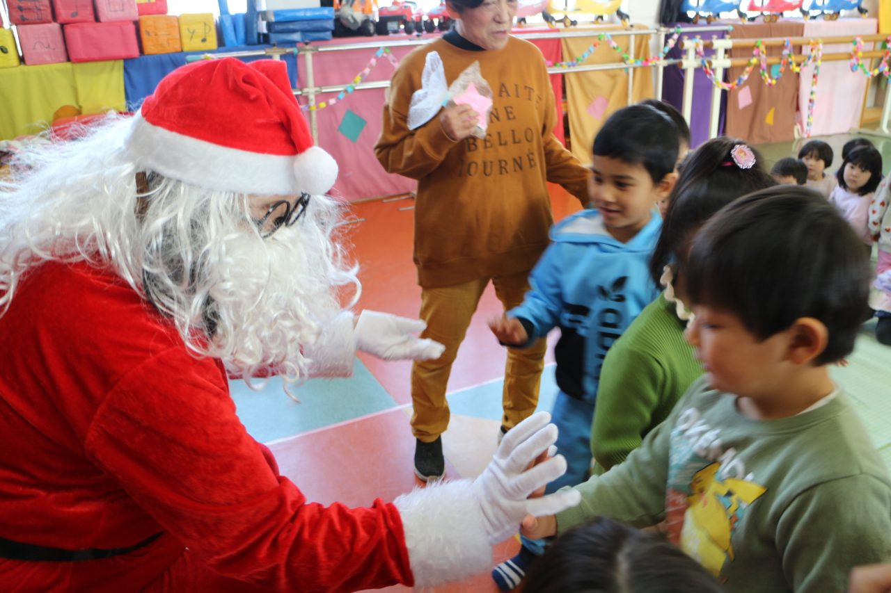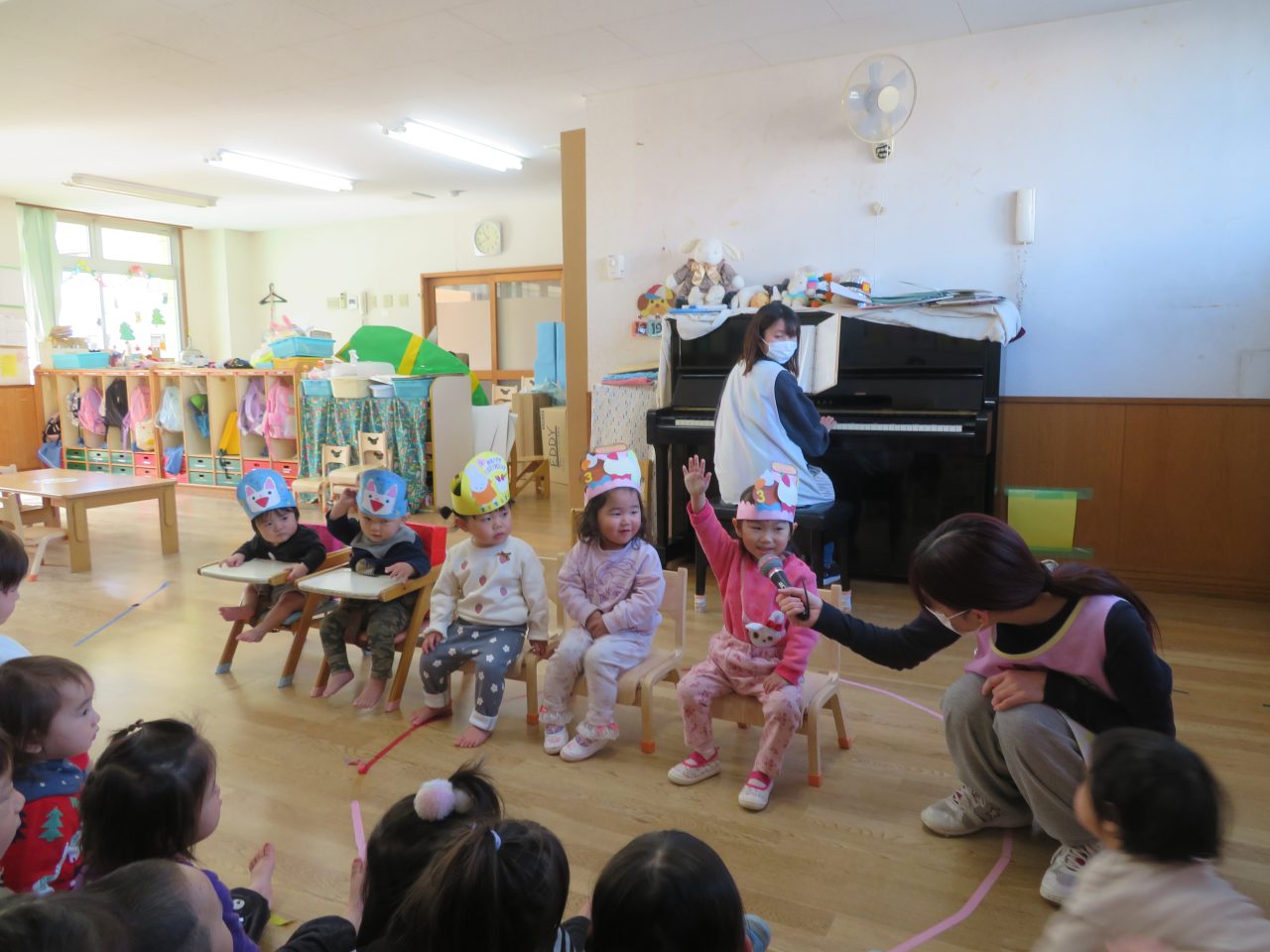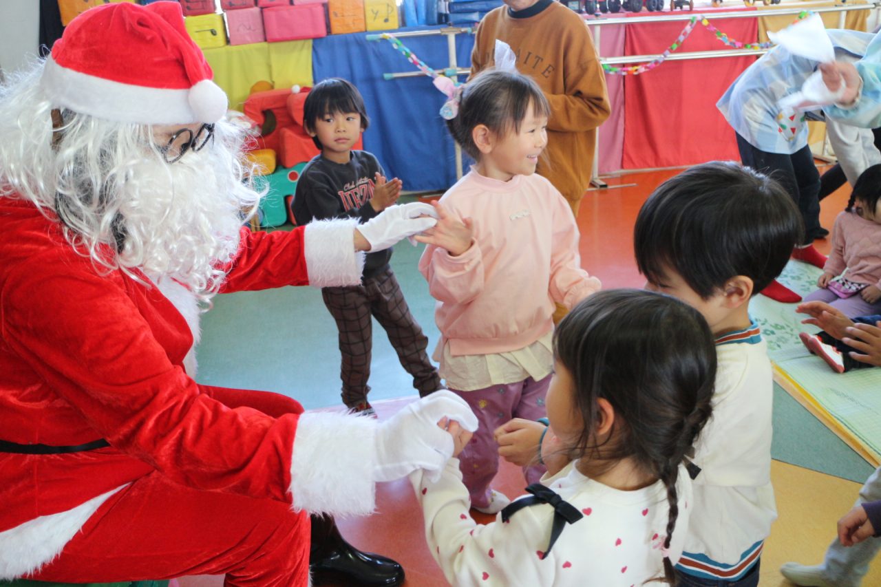 12月19日 (金)今日は少し早めのクリスマス会&12月お誕生日会!!富岡ひばりこども園に子どもたちの人気者サンタさんとトナカイさんが来てくれました✨トナカイさんと楽しいクリスマスダンスを踊った後に遅れてサンタさん登場😲!プレゼントを持ったサンタさんにみんな唖然とし興味津々で目が離せない子どもたち😆💕物語「森のクリスマス」色んな動物が訪れ子どもたちもミニサンタさんを体験しとっても可愛いサンタさんに変身しプレゼントしてもらいました🎁✨最後にワニさんとサンタさんのお疲れ様会の盃を交わしてお別れをしました。またどこかでトナカイさんとサンタさんに会えるといいね!!12月お誕生日の子以上児はプレゼント探しをし未満児は別でお祝いをしました🎉今日1日盛りだくさんの日でいい思い出になったね✌
