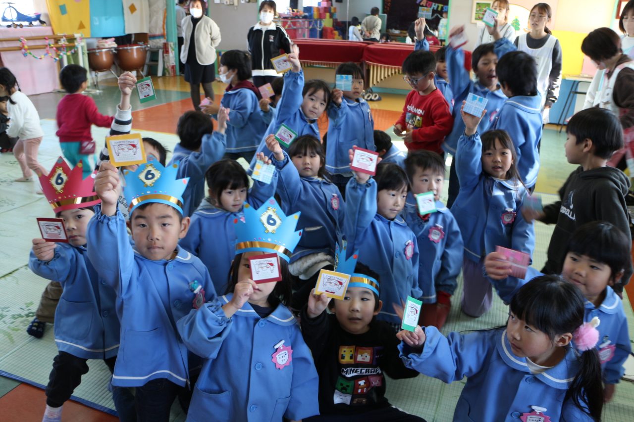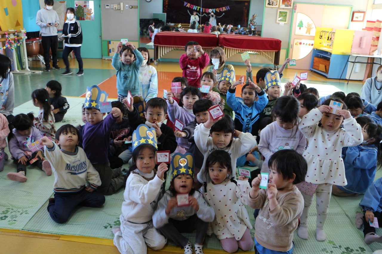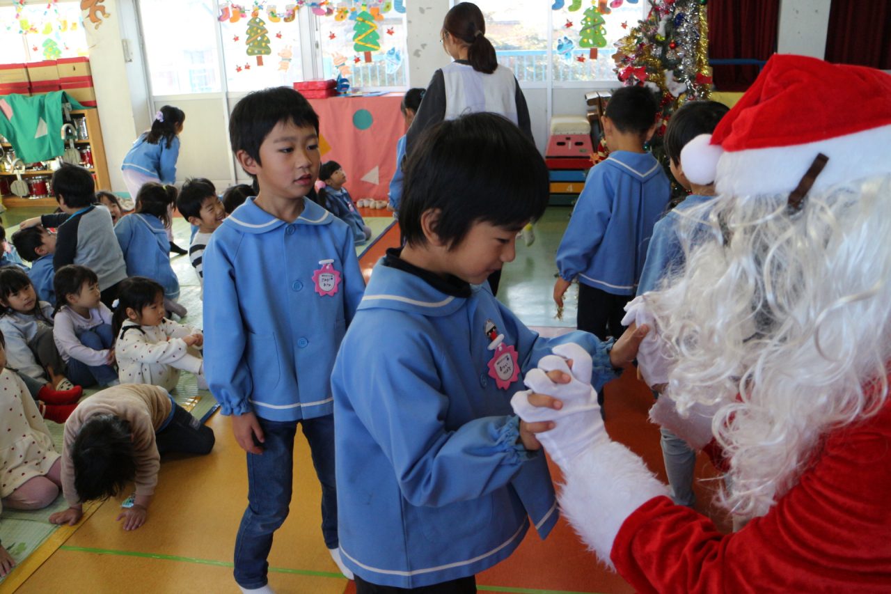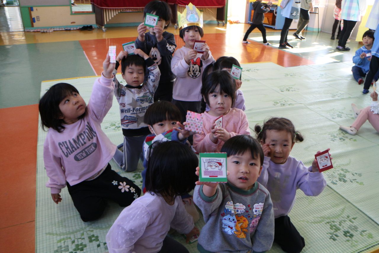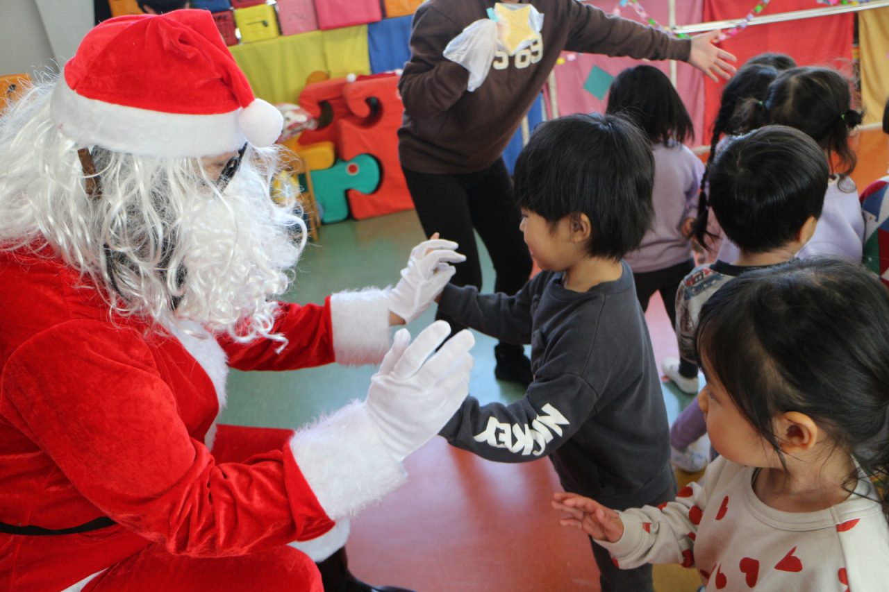 12月19日 (金)今日は少し早めのクリスマス会&12月お誕生日会!!富岡ひばりこども園に子どもたちの人気者サンタさんとトナカイさんが来てくれました✨トナカイさんと楽しいクリスマスダンスを踊った後に遅れてサンタさん登場😲!プレゼントを持ったサンタさんにみんな唖然とし興味津々で目が離せない子どもたち😆💕物語「森のクリスマス」色んな動物が訪れ子どもたちもミニサンタさんを体験しとっても可愛いサンタさんに変身しプレゼントしてもらいました🎁✨最後にワニさんとサンタさんのお疲れ様会の盃を交わしてお別れをしました。またどこかでトナカイさんとサンタさんに会えるといいね!!12月お誕生日の子以上児はプレゼント探しをし未満児は別でお祝いをしました🎉今日1日盛りだくさんの日でいい思い出になったね✌