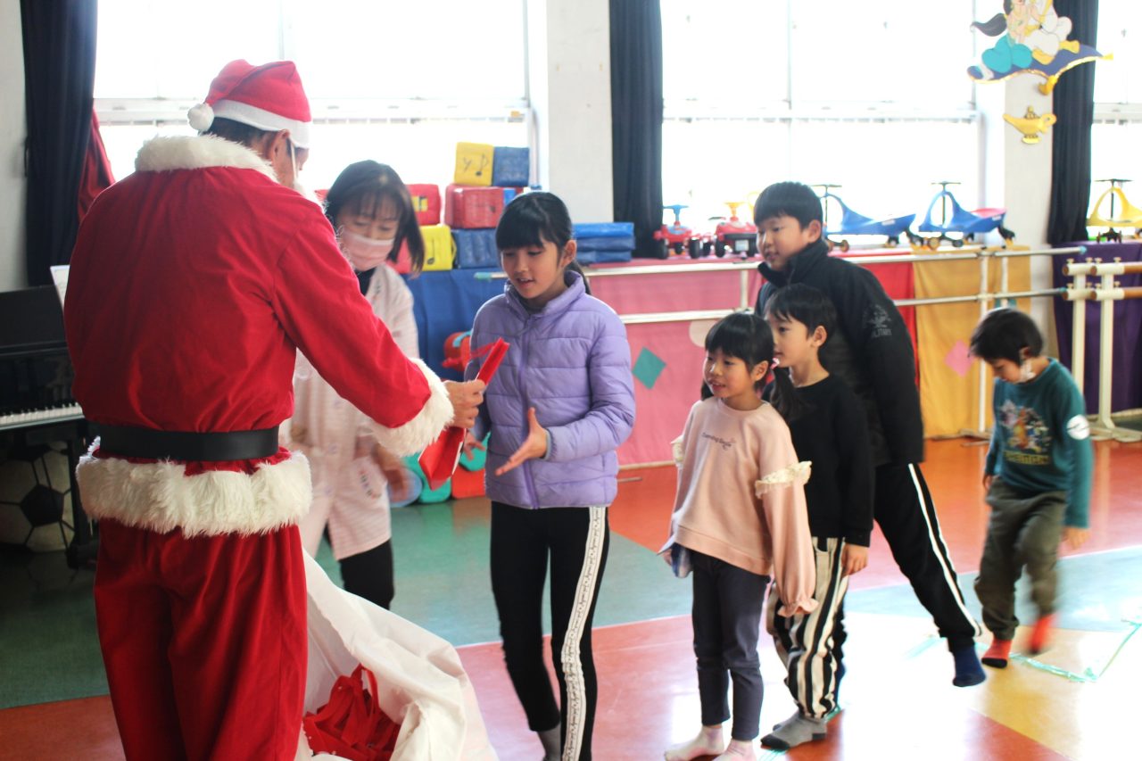 24 12月 2025 0 クリスマス会🎄 大空学園 12月23日(火)クリスマス会をしました🎄 各学年のお友達が交わりポケモンを探せツリーゲームをして、楽しい時間を過ごしました🎉 その後、サンタさんからプレゼントをもらい、皆笑顔でした😄 今年もお忙しい中来てくださり、サンタさんありがとうございました🎅 おやつは、エプロン・バンダナ・マスクをしてケーキ作りをしました🎂 果物たっぷりのケーキを皆美味しくいただきました😋