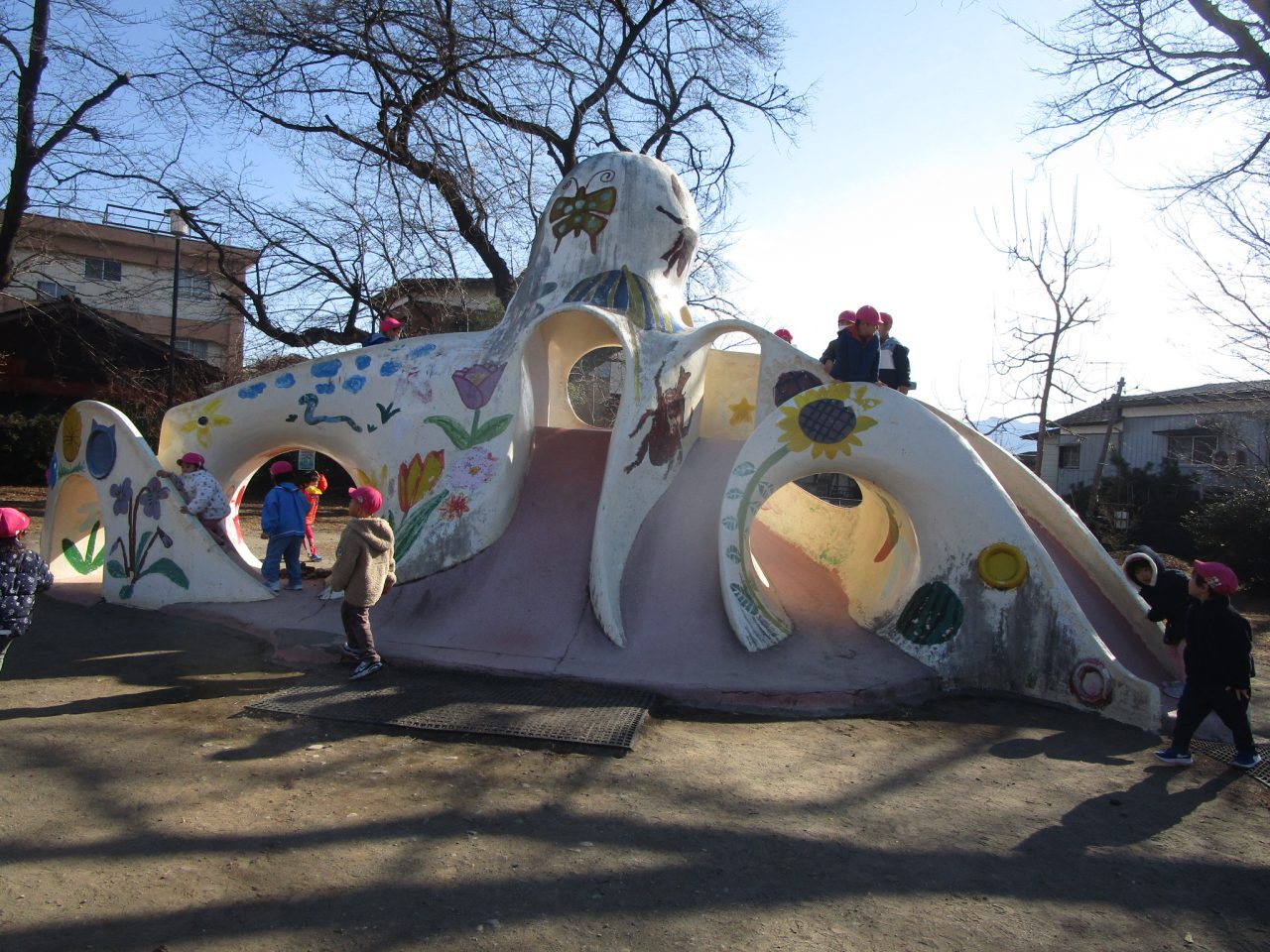 今日は、久しぶりにかぶら公園へお散歩に行ってきました!たこやタイヤの遊具、ブランコをを楽しみました。タイヤの遊具に苦戦する子もいましたが、友だちがおしりや足を支えて協力してのぼる姿も見られました✨鬼ごっこも盛り上がり「暑くなったー!」「おなかすいたー!」と楽しく過ごすことができました。