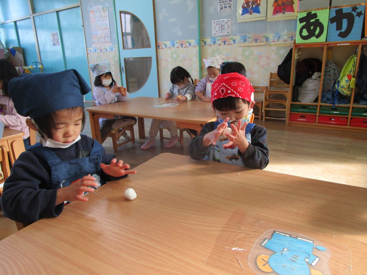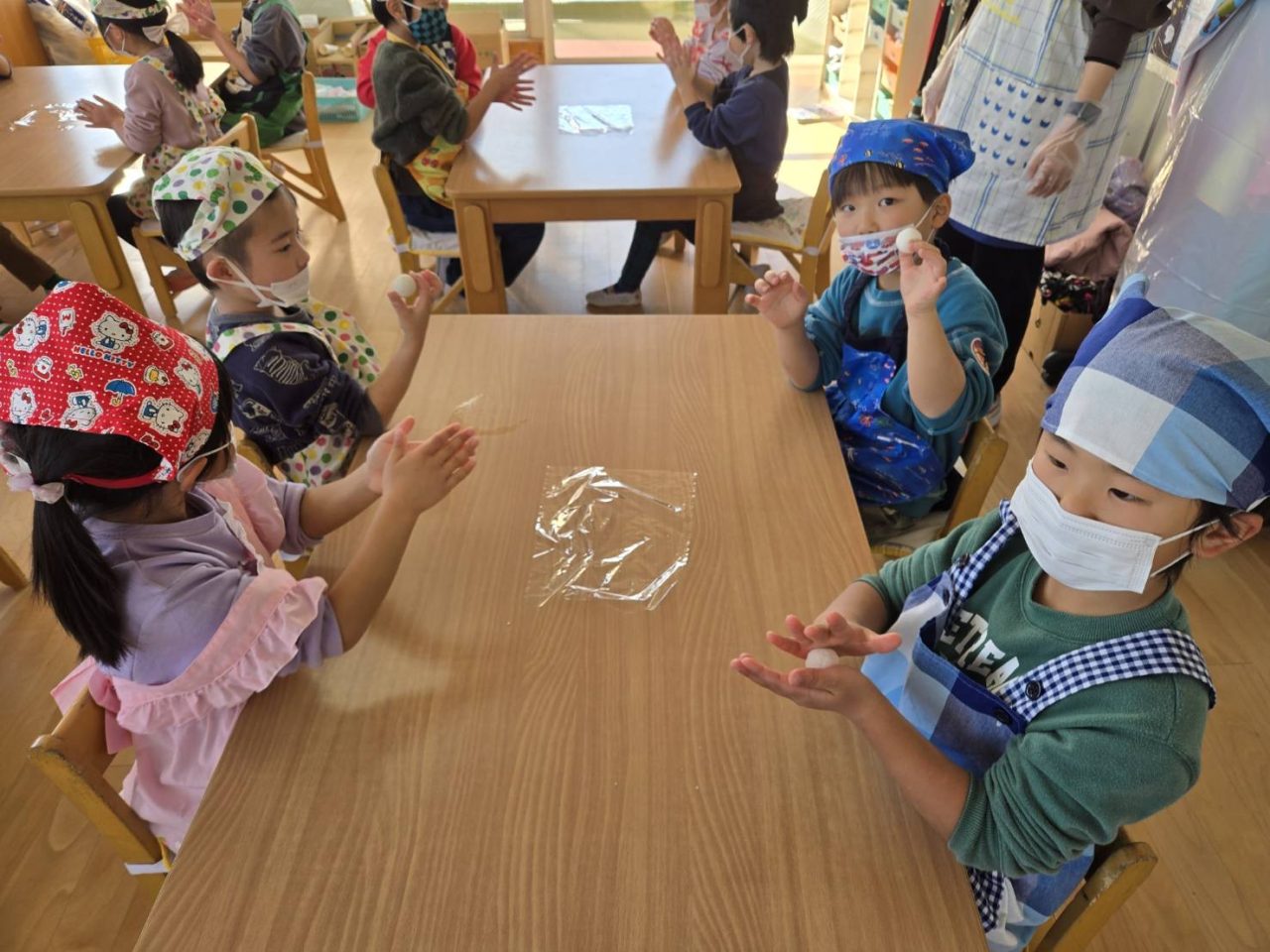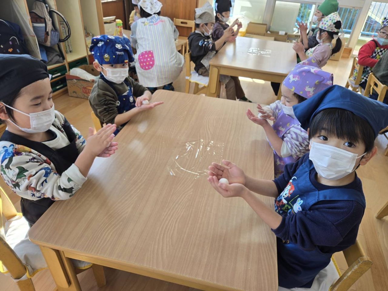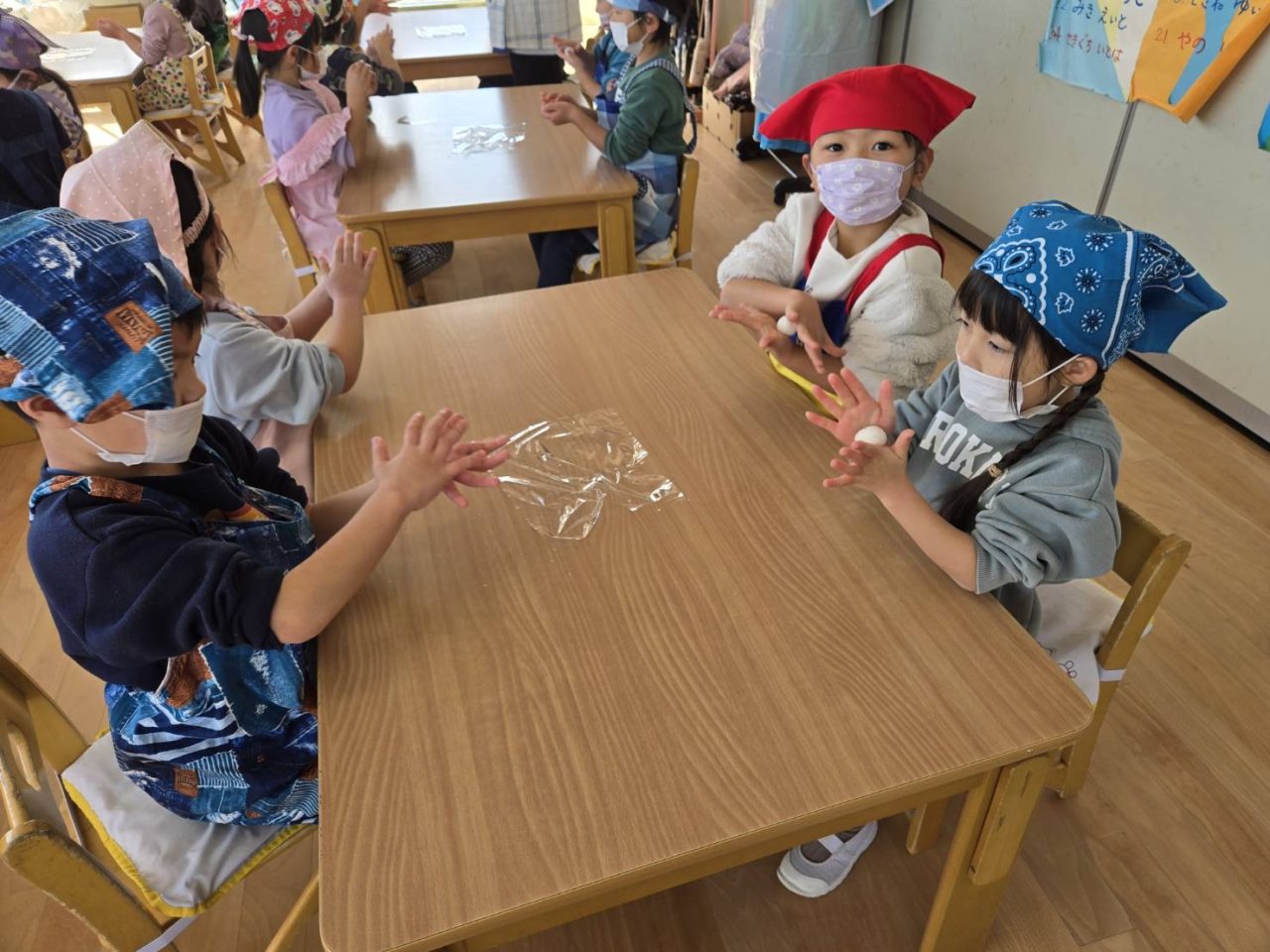 子どもたちもきれいに丸めて「もっとまるくするんだ!」と真剣なまなざしで丸めることができました😊