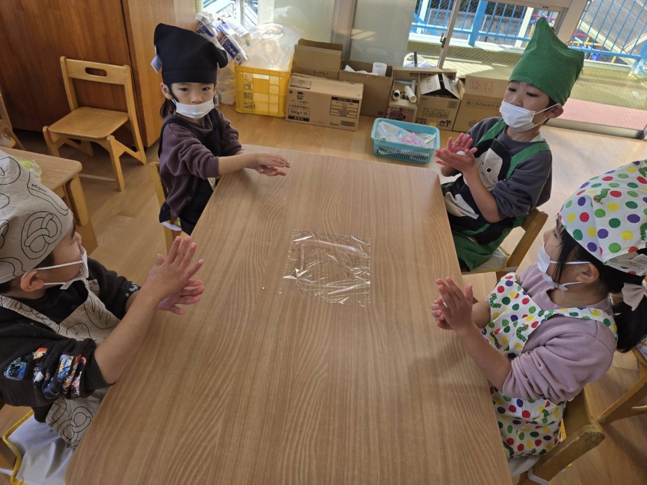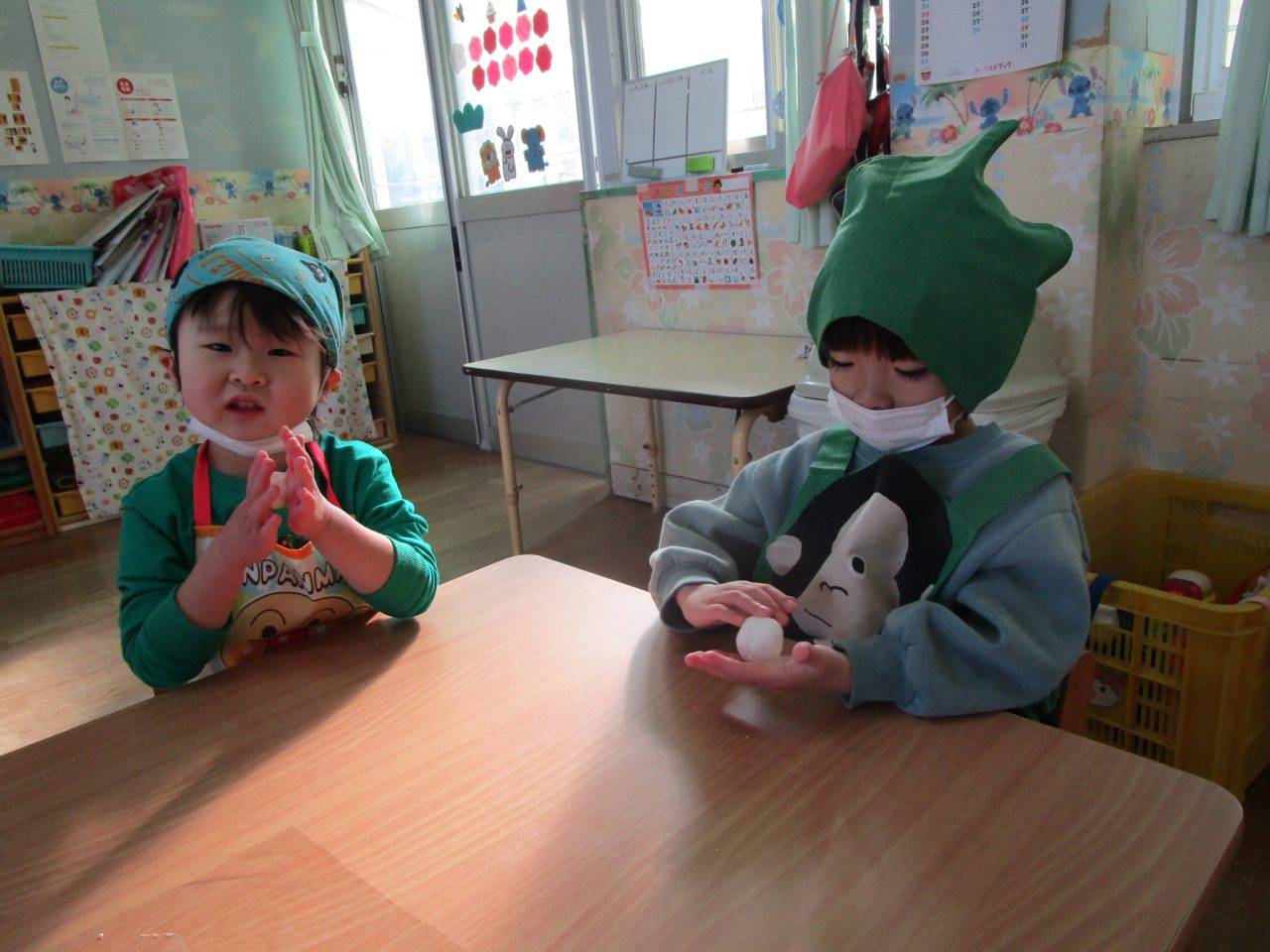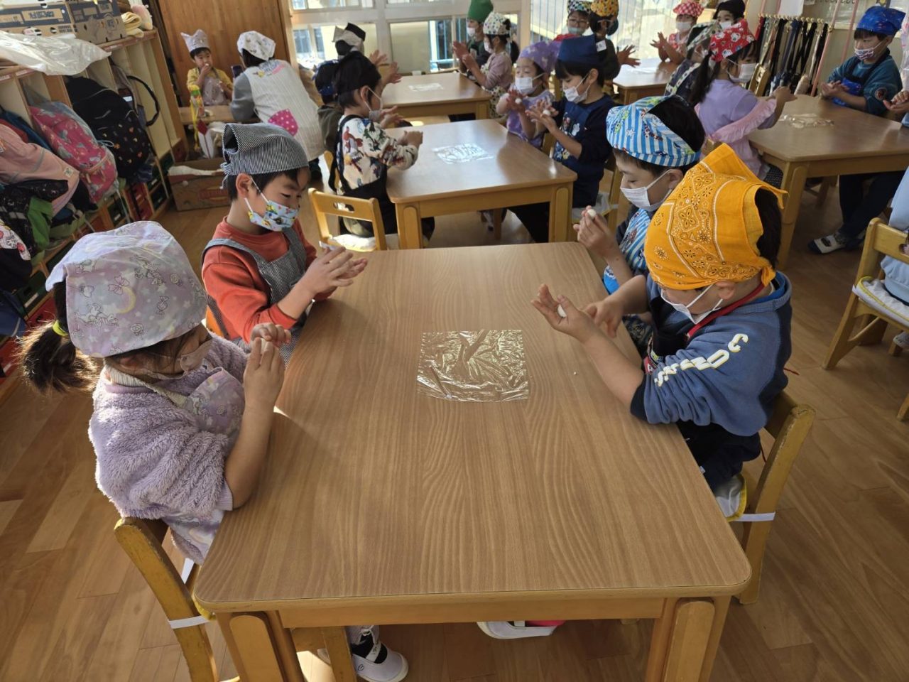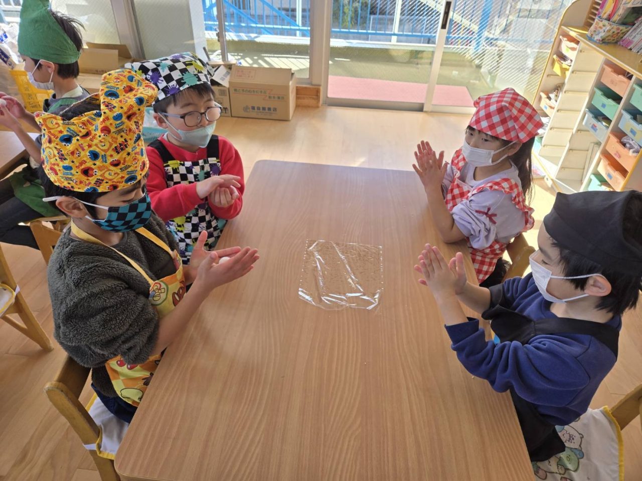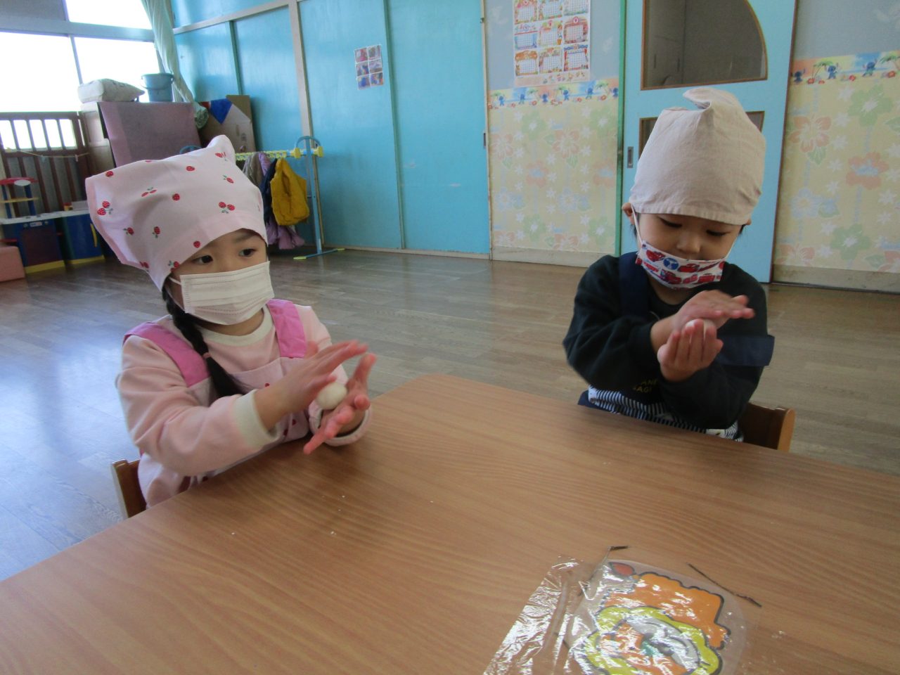 子どもたちもきれいに丸めて「もっとまるくするんだ!」と真剣なまなざしで丸めることができました😊
