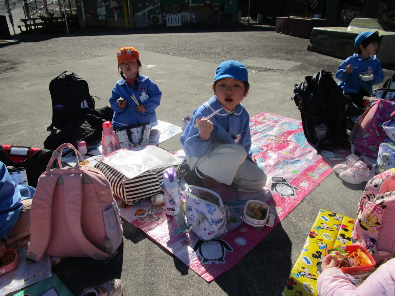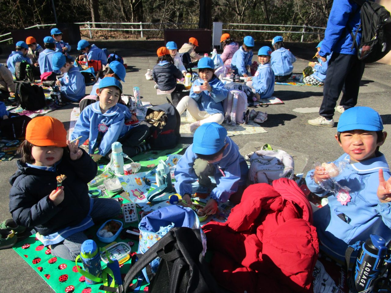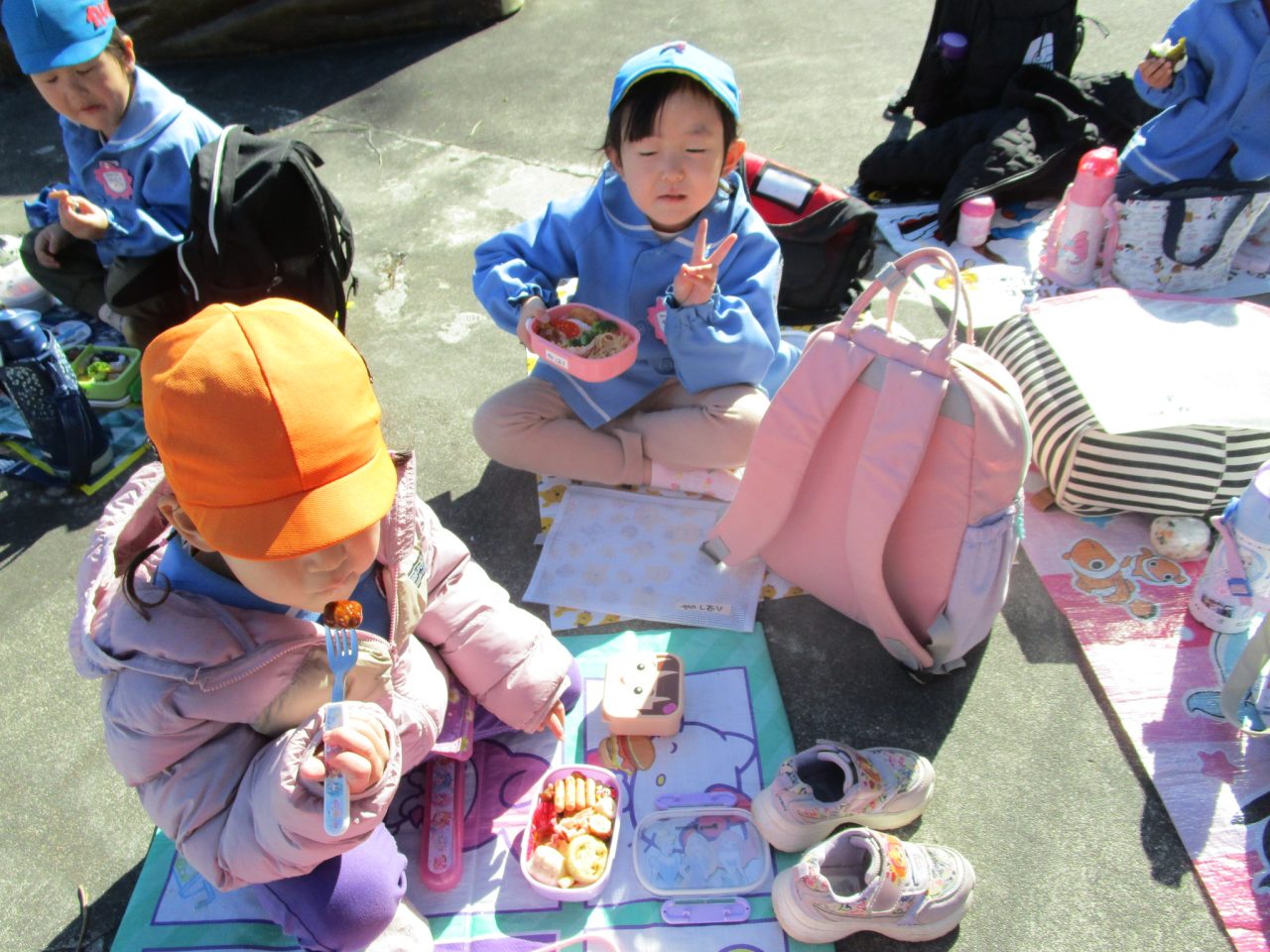 お弁当も🍱交流を持ちながらみんなで一緒に食べました😊✌シートを敷いて外で食べることができました🎵