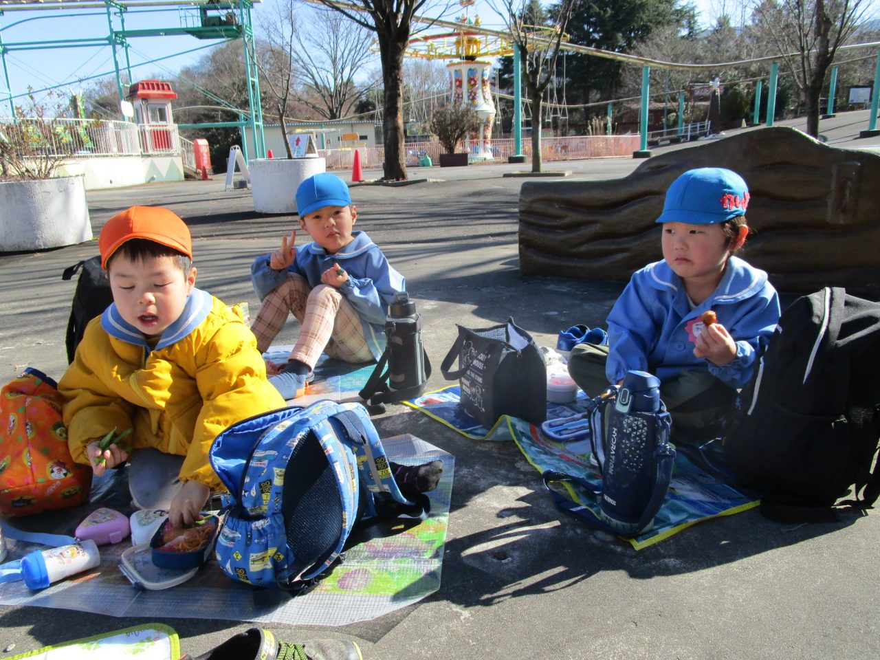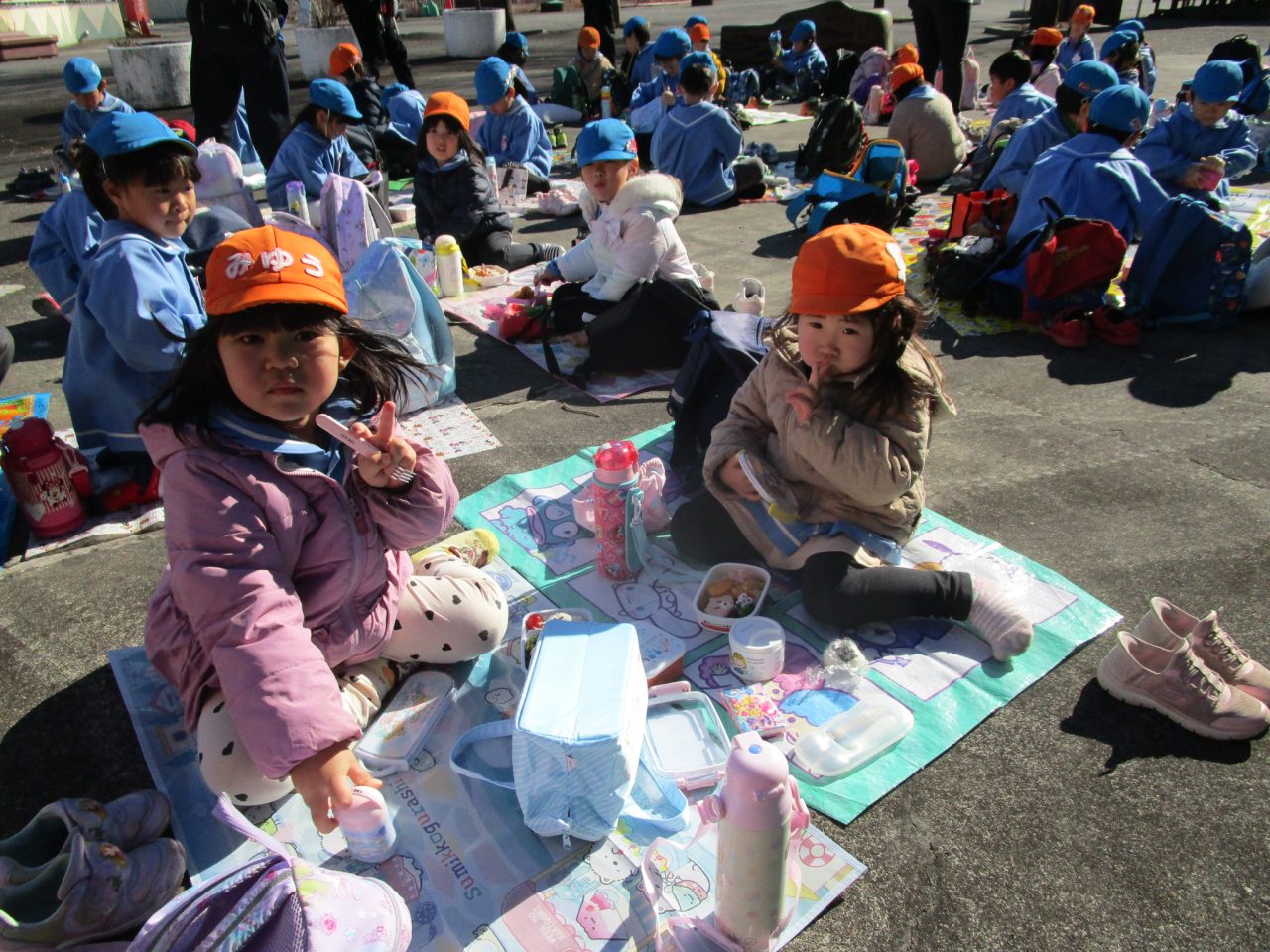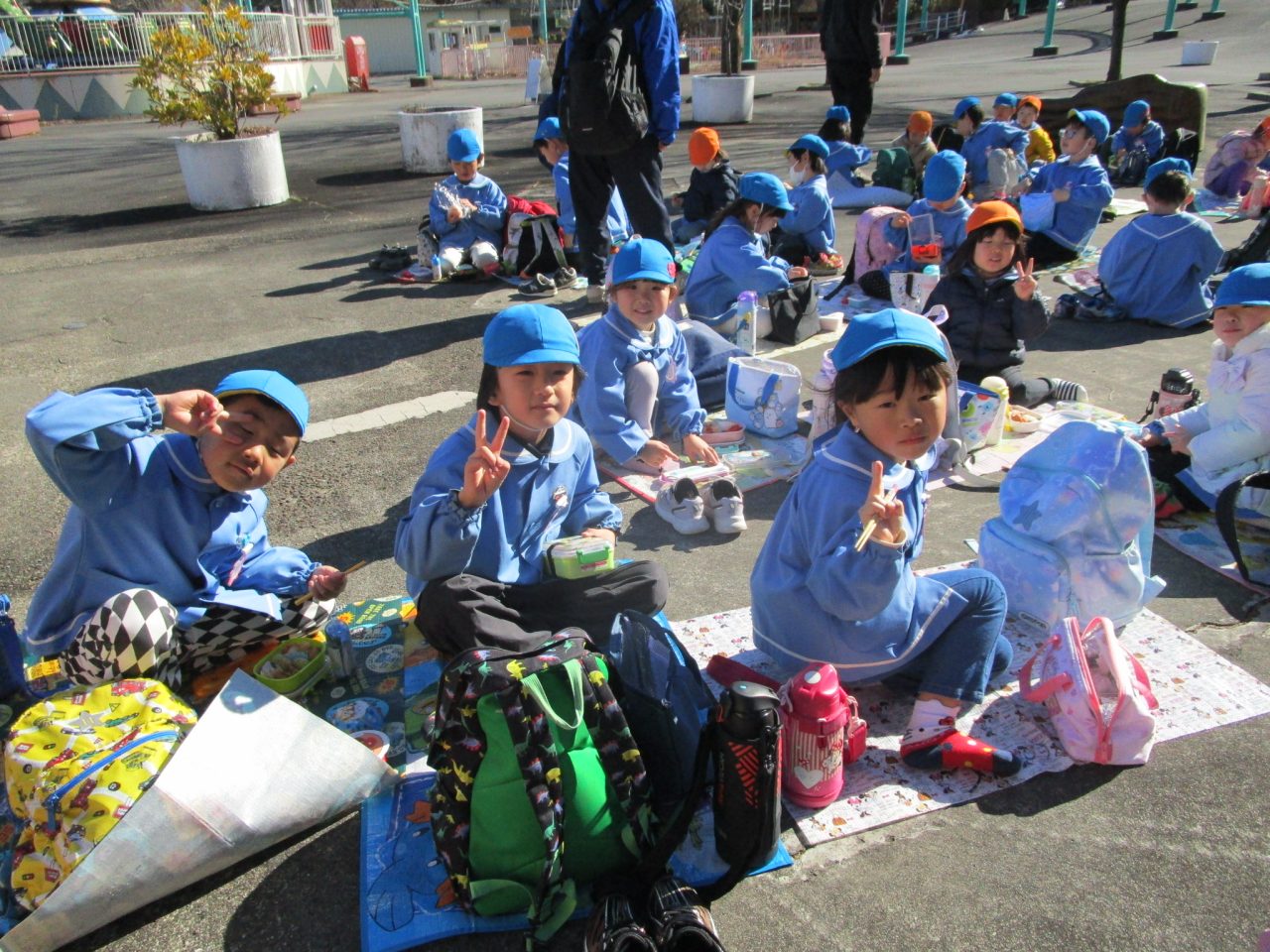 お弁当も🍱交流を持ちながらみんなで一緒に食べました😊✌シートを敷いて外で食べることができました🎵
