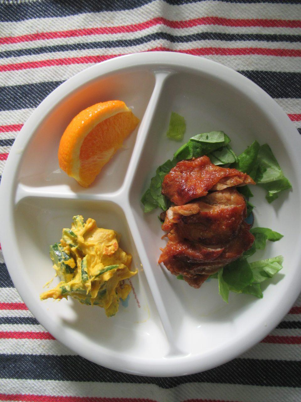 お昼・・・タンドリーチキン/かぼちゃサラダ/オレンジ