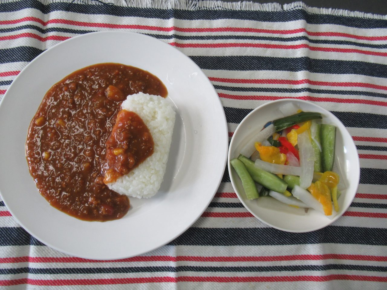 お昼・・・キーマカレー/即席ピクルス
