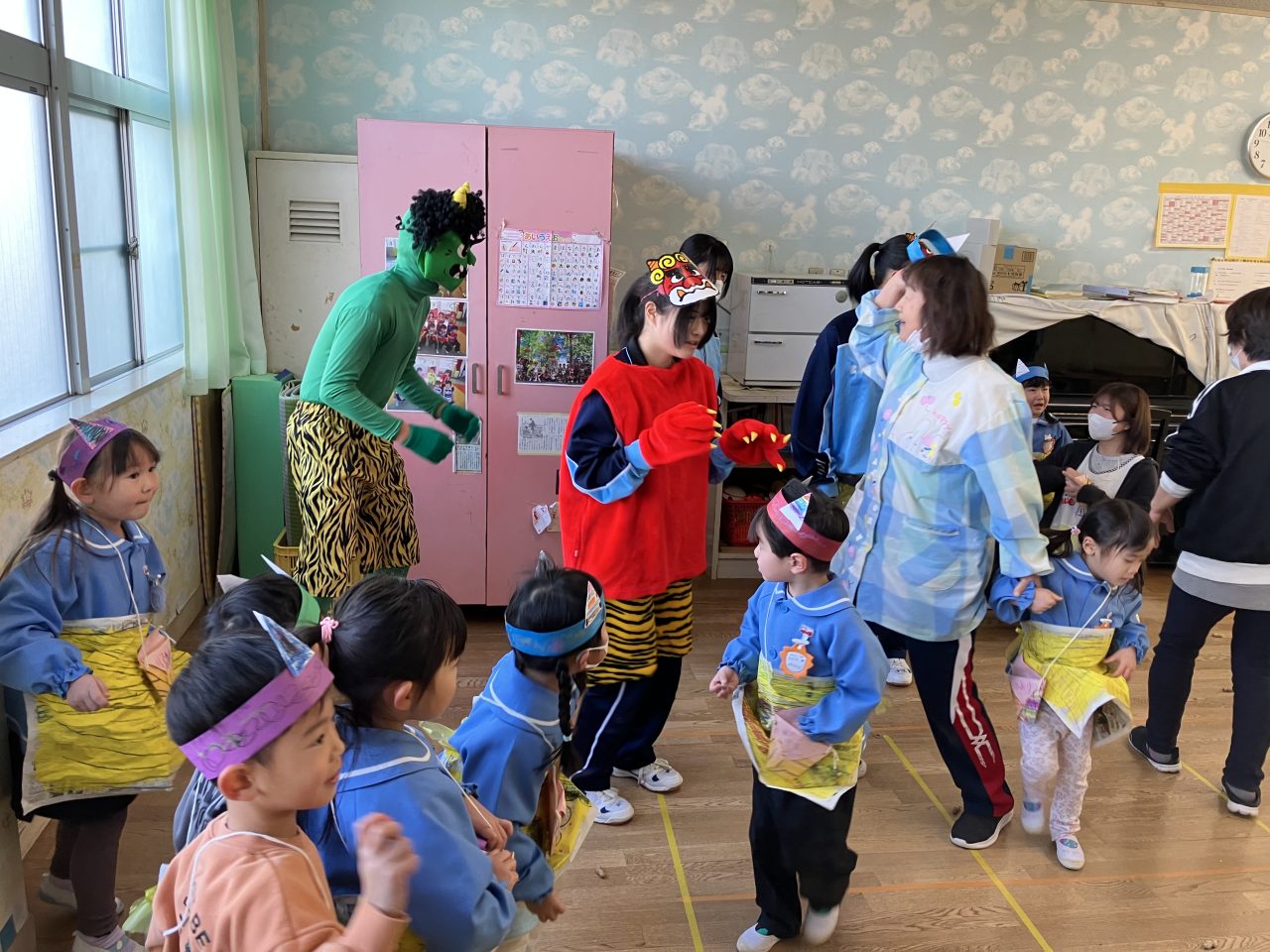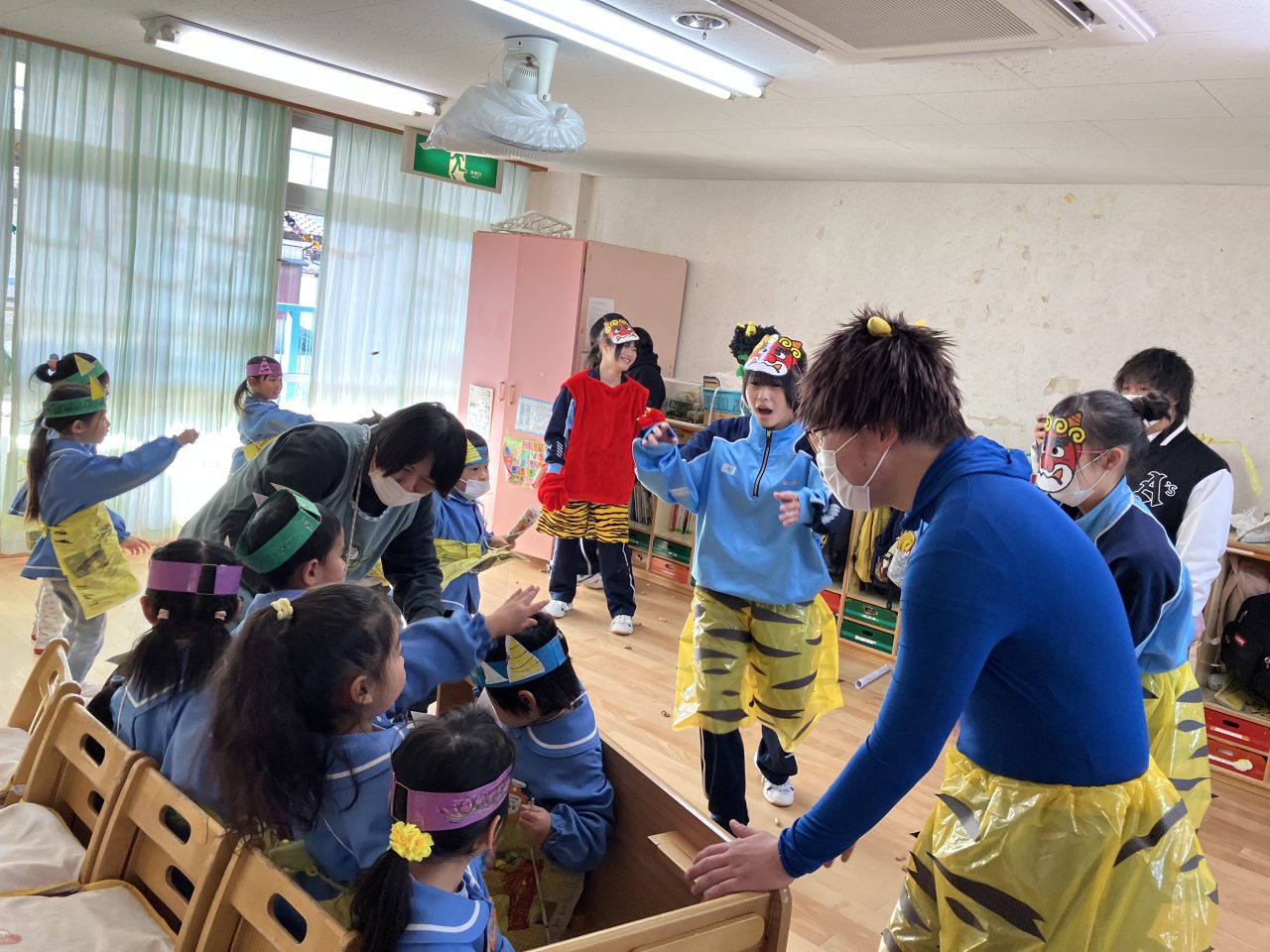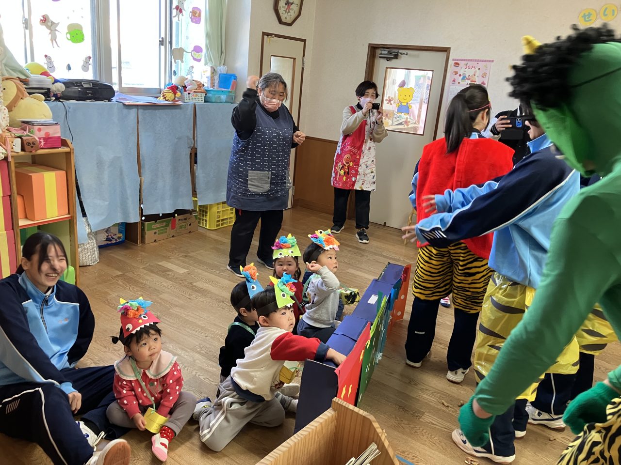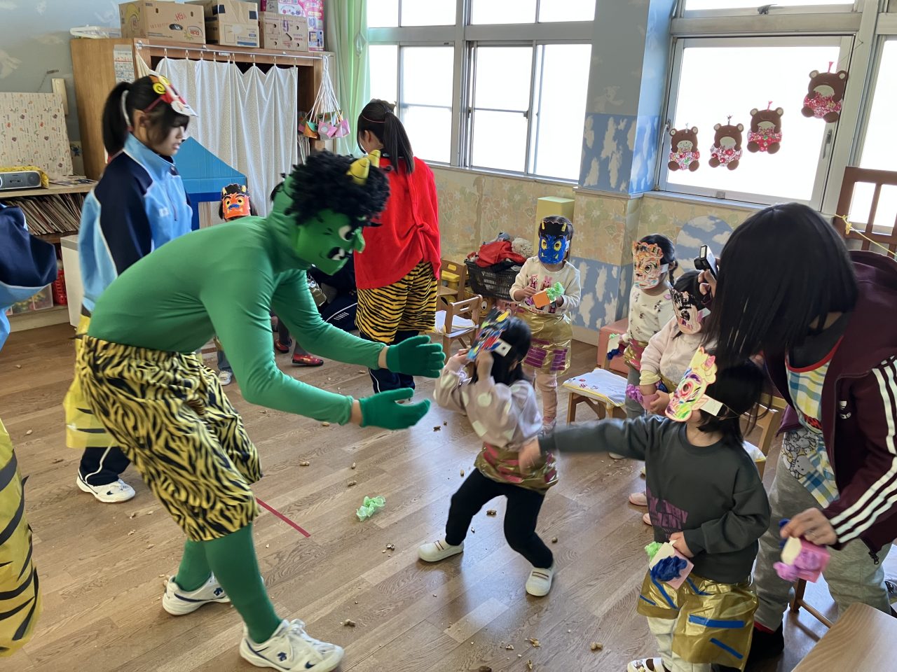 今年も安中総合学園高校から14名の学生さんが来てくれて、鬼になってくれたり、子どもたちと一緒に豆まきをしてくれました。