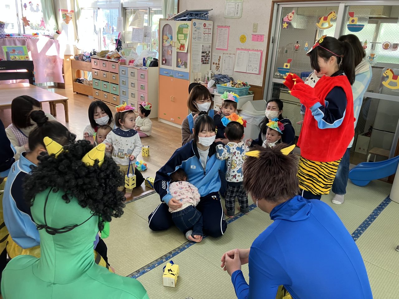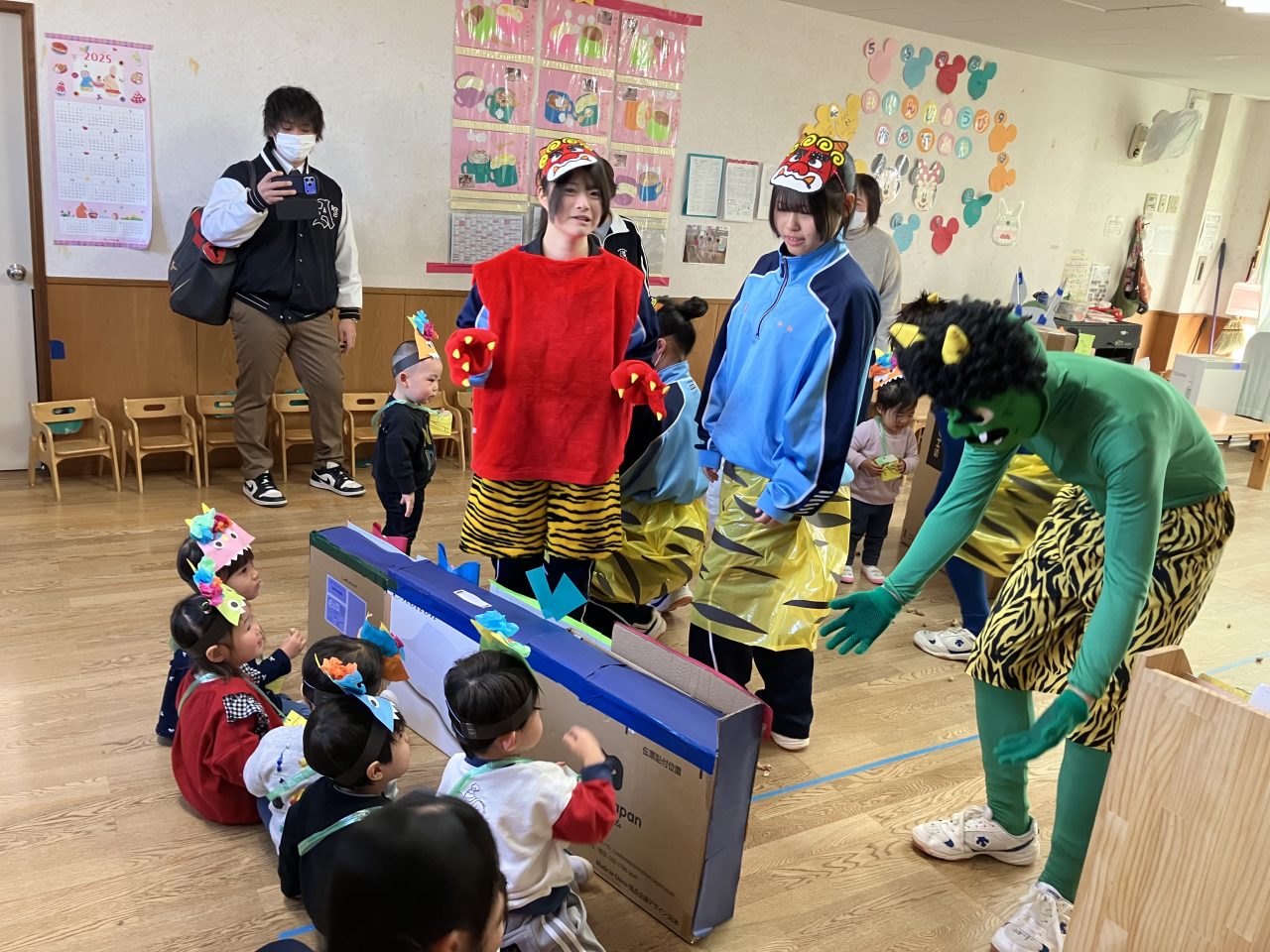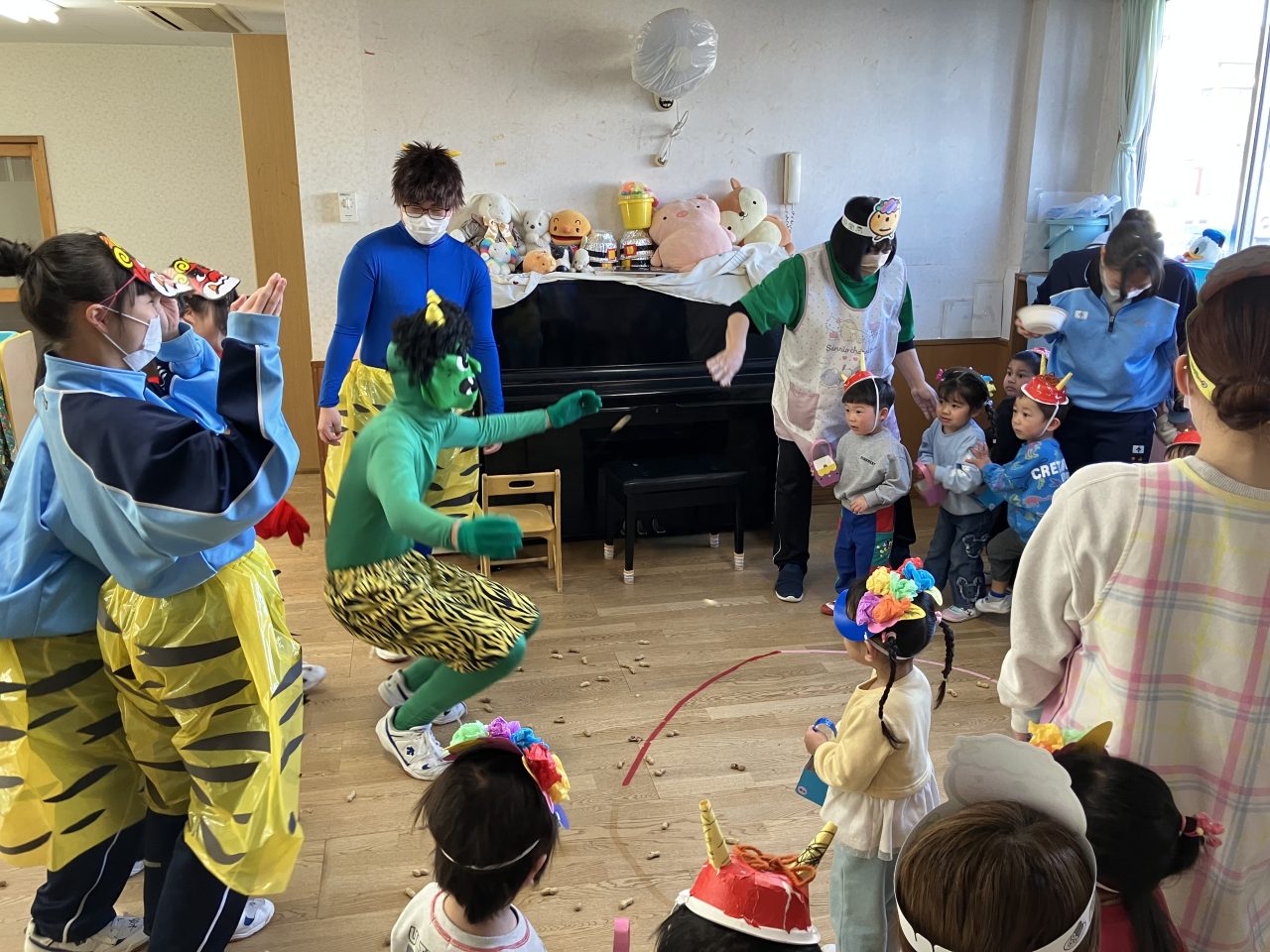 今年も安中総合学園高校から14名の学生さんが来てくれて、鬼になってくれたり、子どもたちと一緒に豆まきをしてくれました。