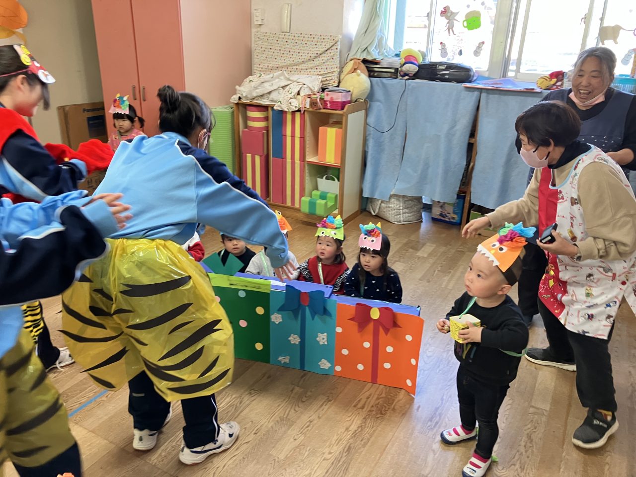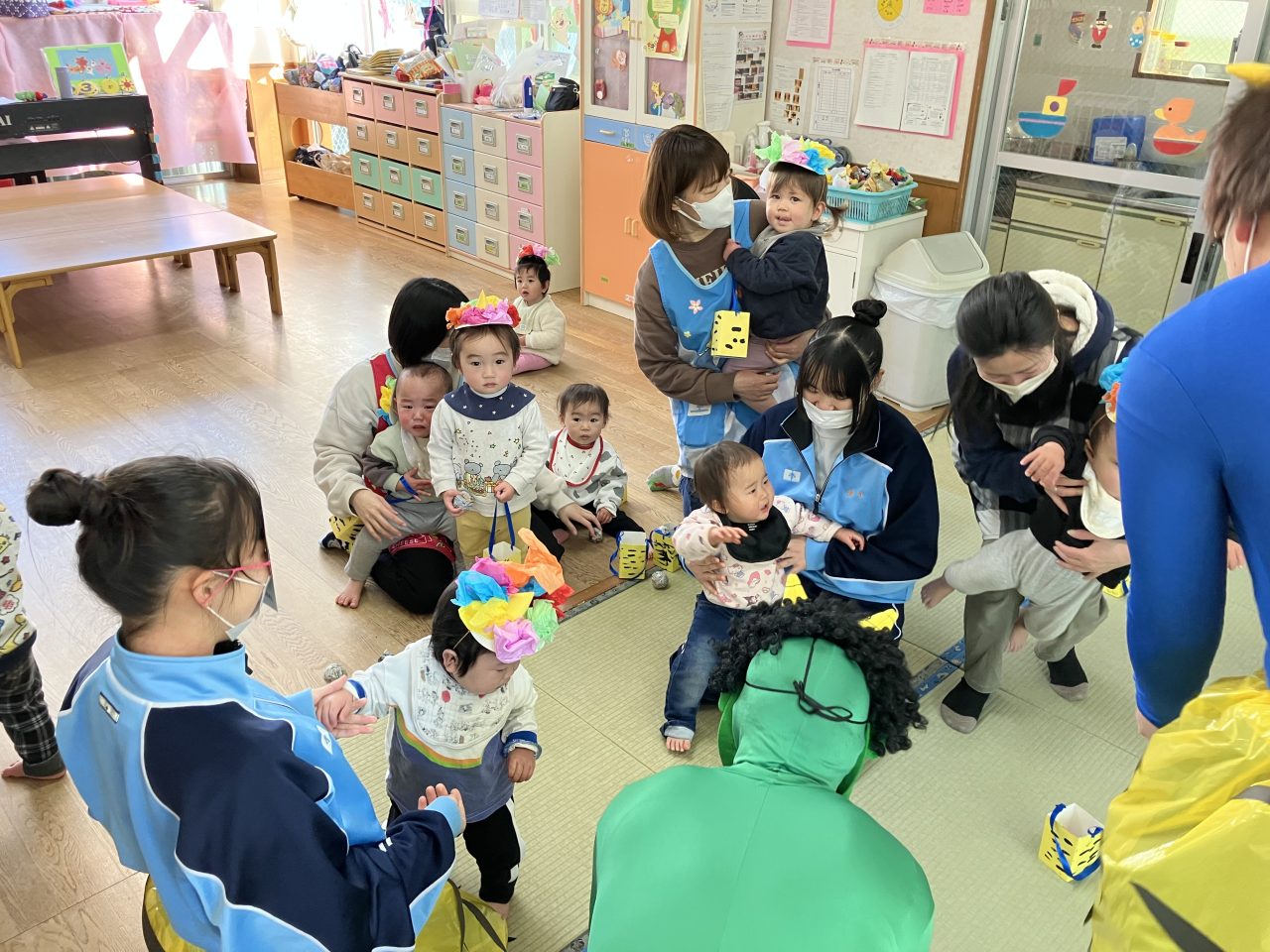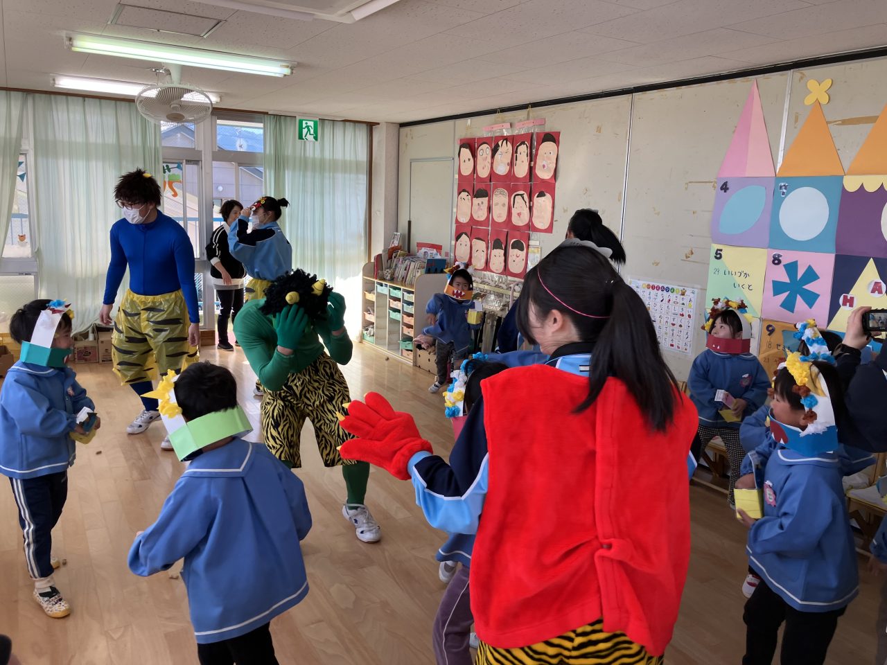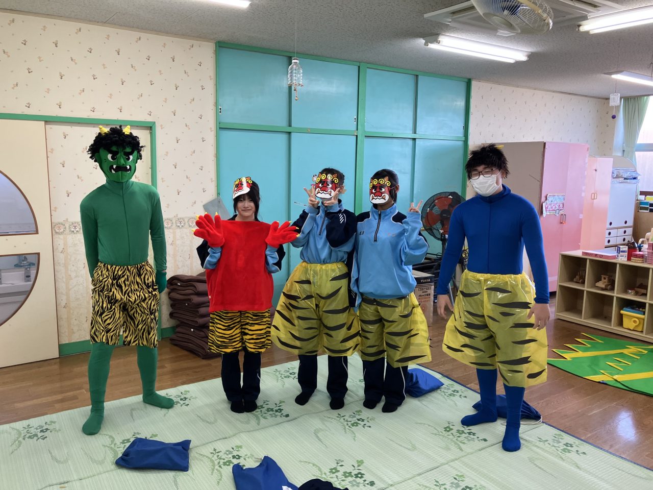 今年も安中総合学園高校から14名の学生さんが来てくれて、鬼になってくれたり、子どもたちと一緒に豆まきをしてくれました。