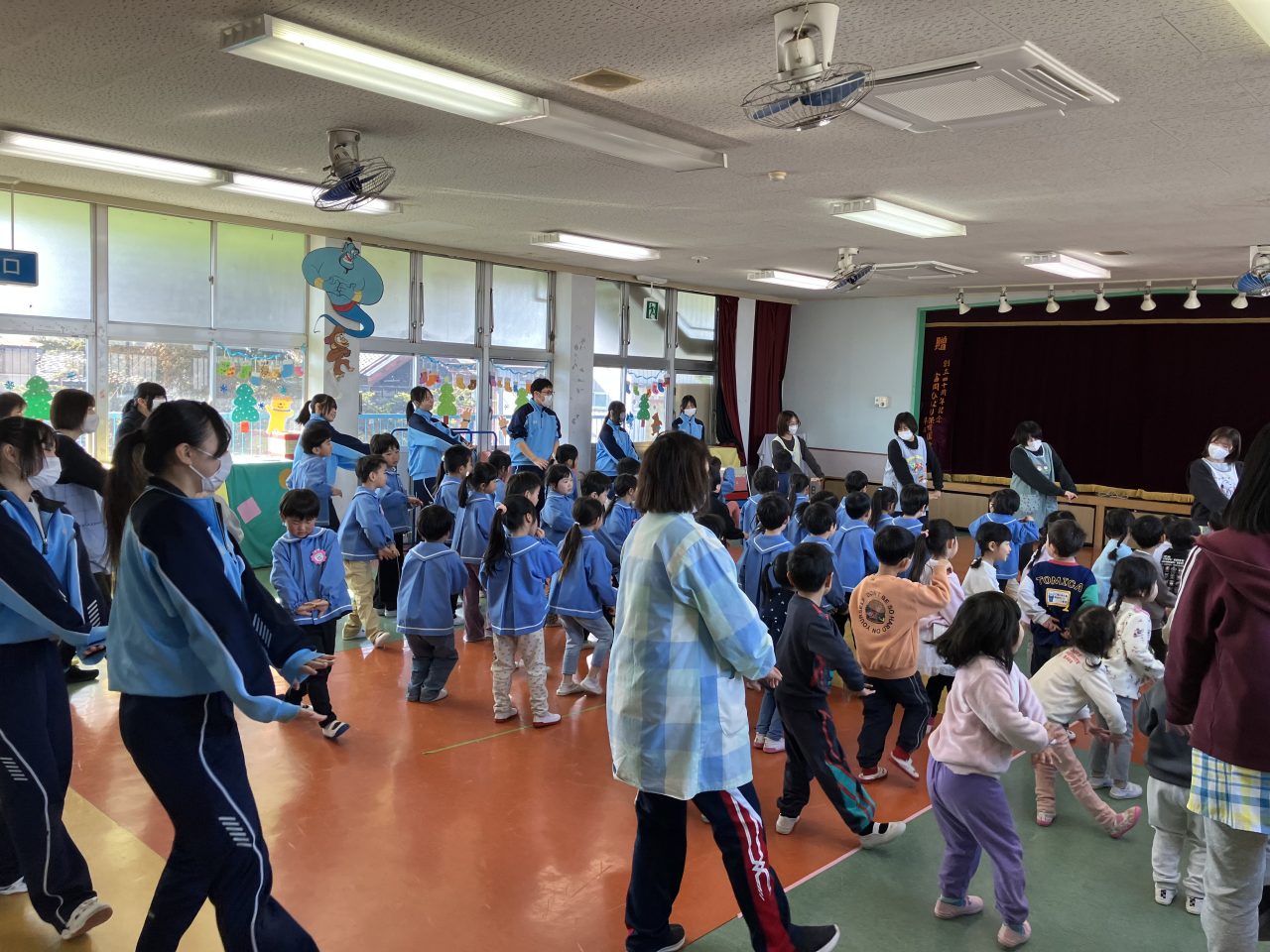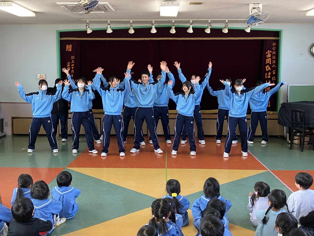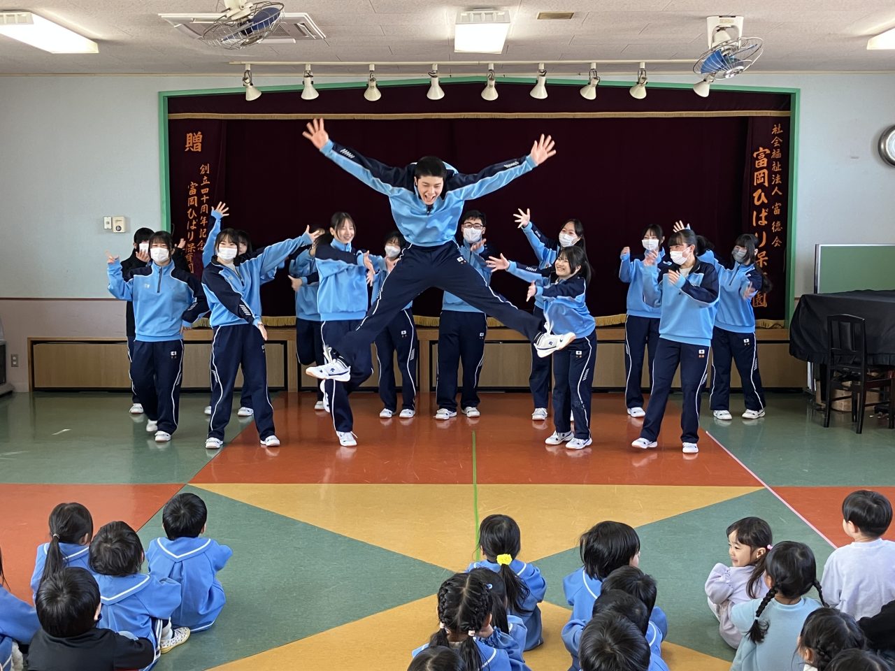 豆まき後にはホールに集まって学生さんと一緒に体操をしたり、ダンス部の生徒さんの素晴らしいダンスを披露してもらったり、たくさん交流をもつことができました。