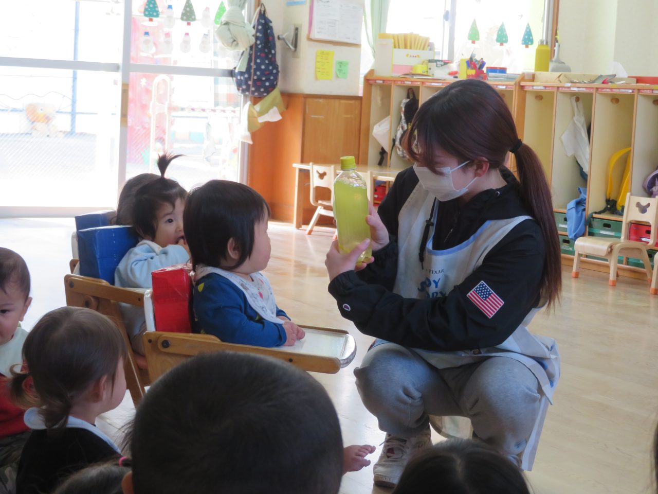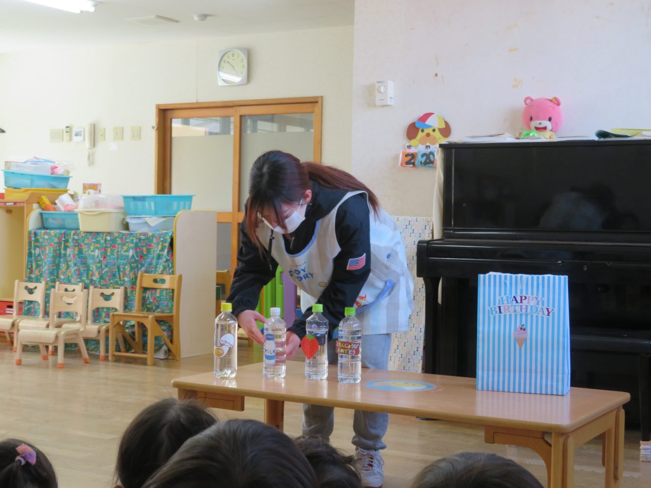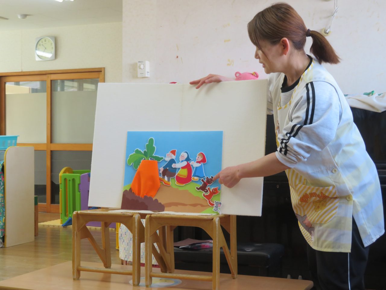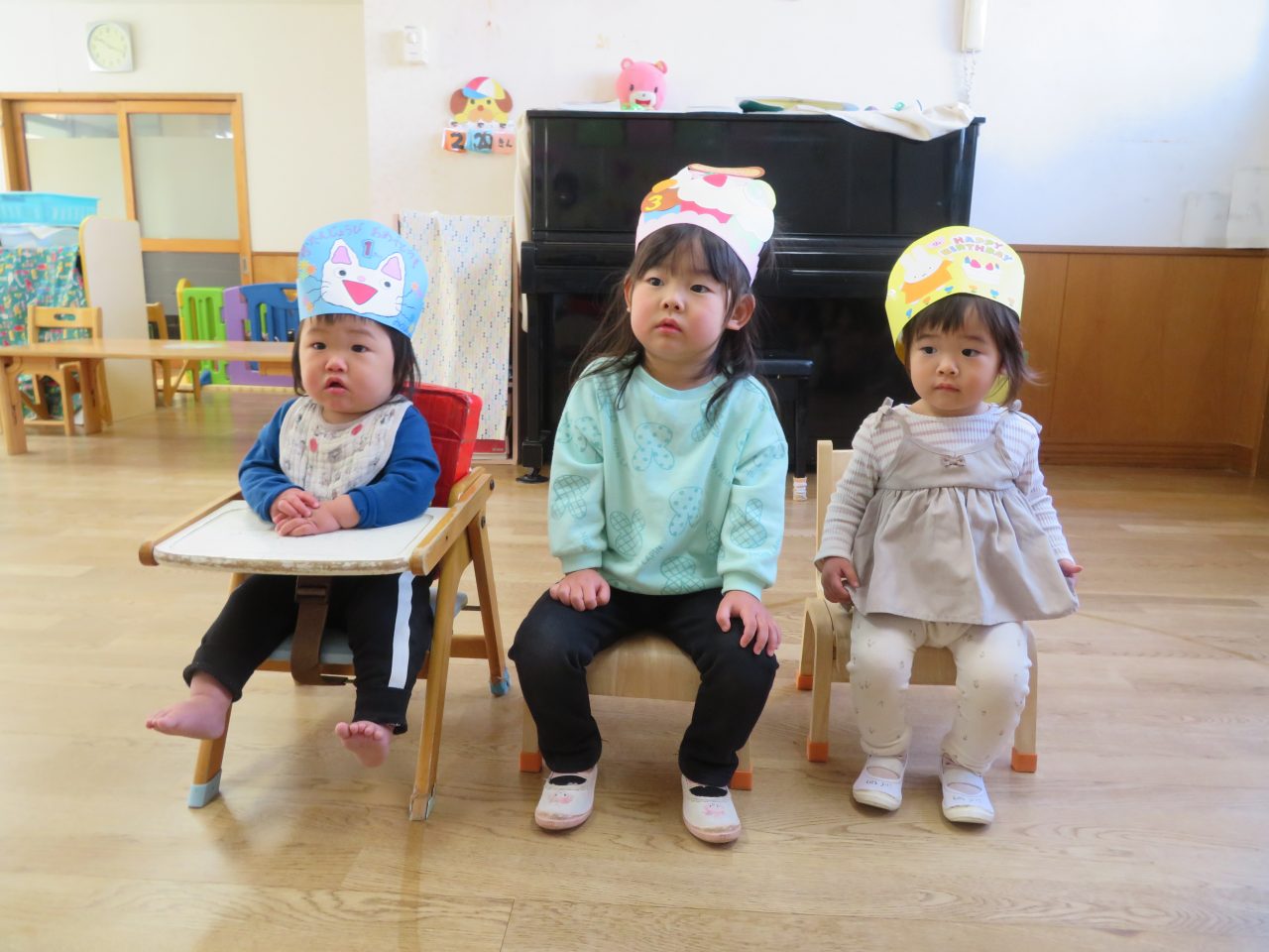 2月20日(金) 今日は2月のお誕生日会でした。各クラス3名の子をみんなでお祝いしました💕最初にインタビューをしましたがみんなの前で緊張気味の子どもたちがとっても可愛かったです😊最初に魔法の水で誕生日ケーキを作りました🎂振ると色が変わりケーキの材料に変身!子どもたちはびっくりで思わず声をあげ喜んでくれました✨作ったケーキはおやつに出るからお、た、の、し、み、に💛ペープサート「おおきなにんじん」みんなの声援の元おおきなにんじんが収穫できました🥕これを機に人参が苦手な子も食べれるといいですね!!改めて2月生まれの子お誕生日おめでとう🎉残り少ない1か月楽しく過ごしましょう✌