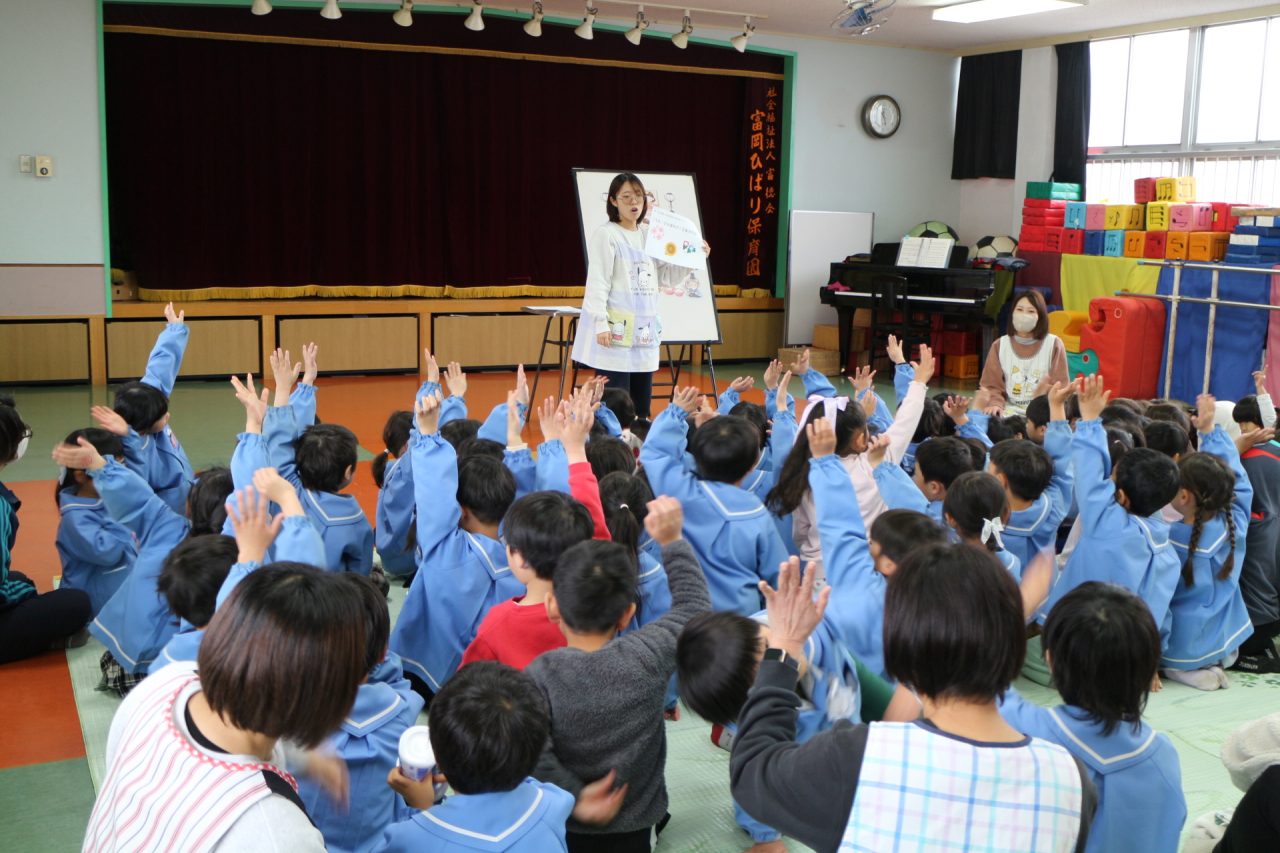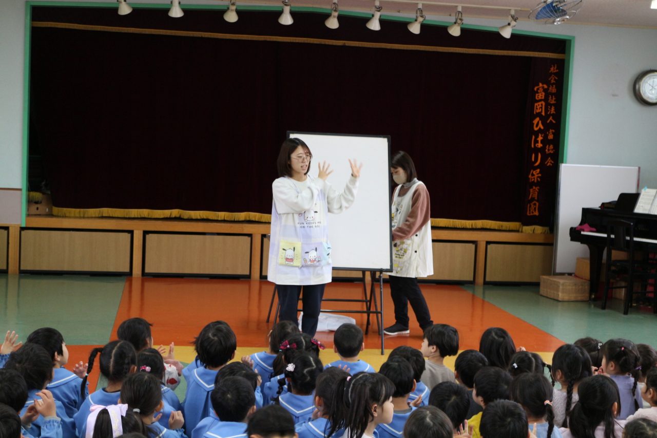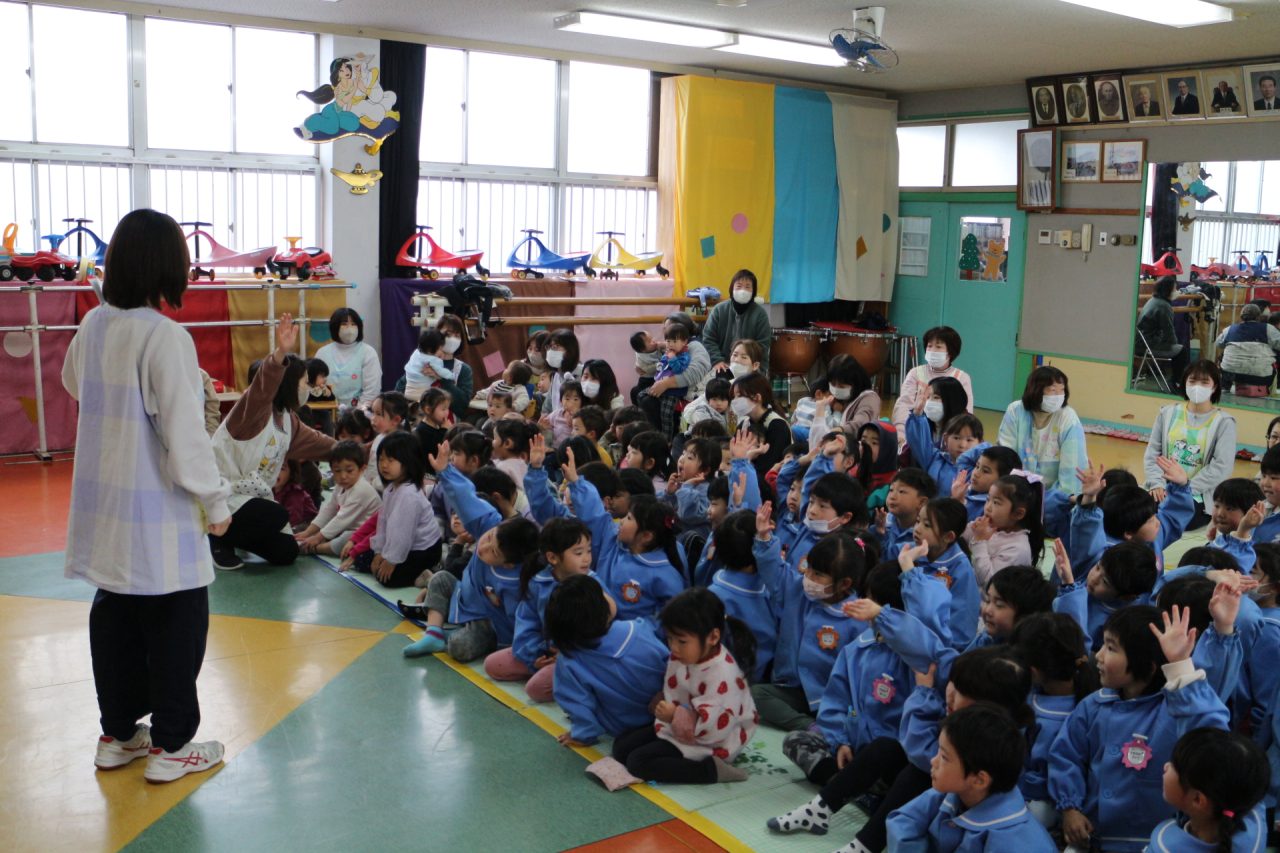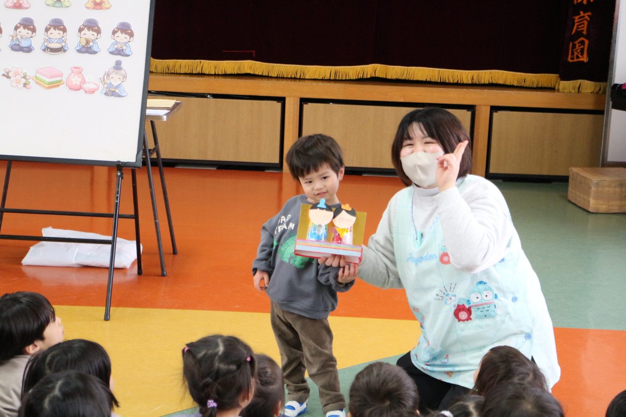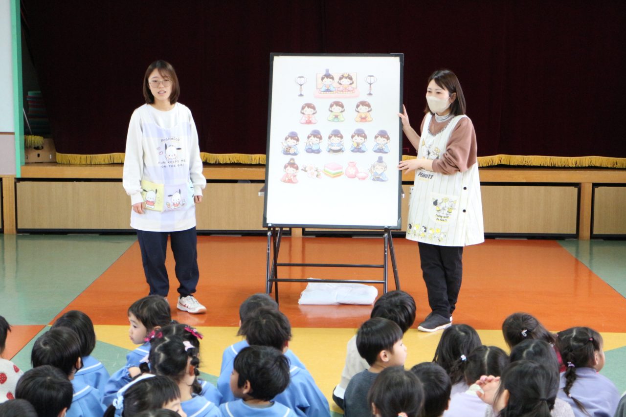 パネルシアターを見たり、クイズをしたり、自分たちが作ったおひなさまの紹介があったりと、子どもたちも集会を楽しんでいるようでした。