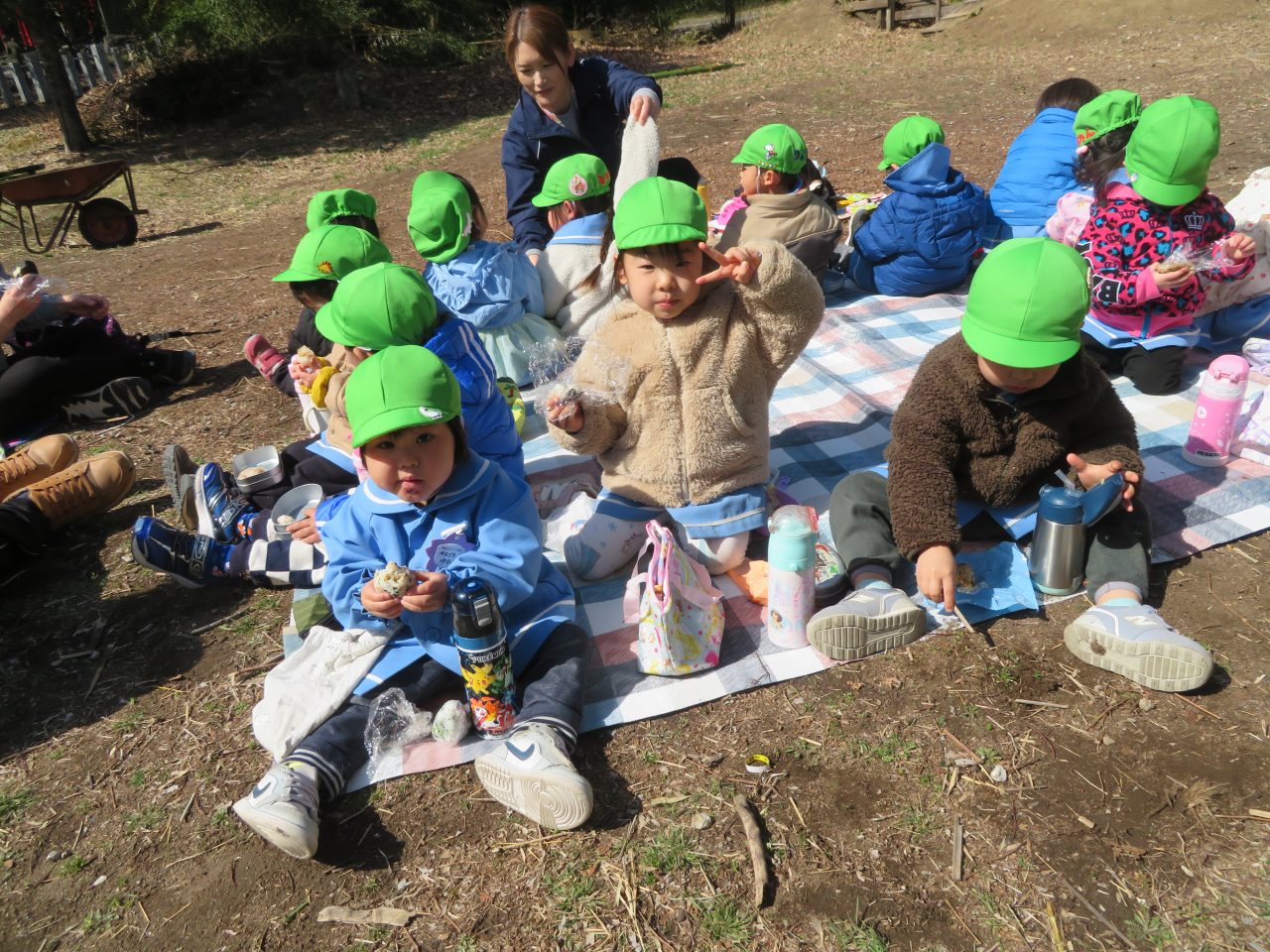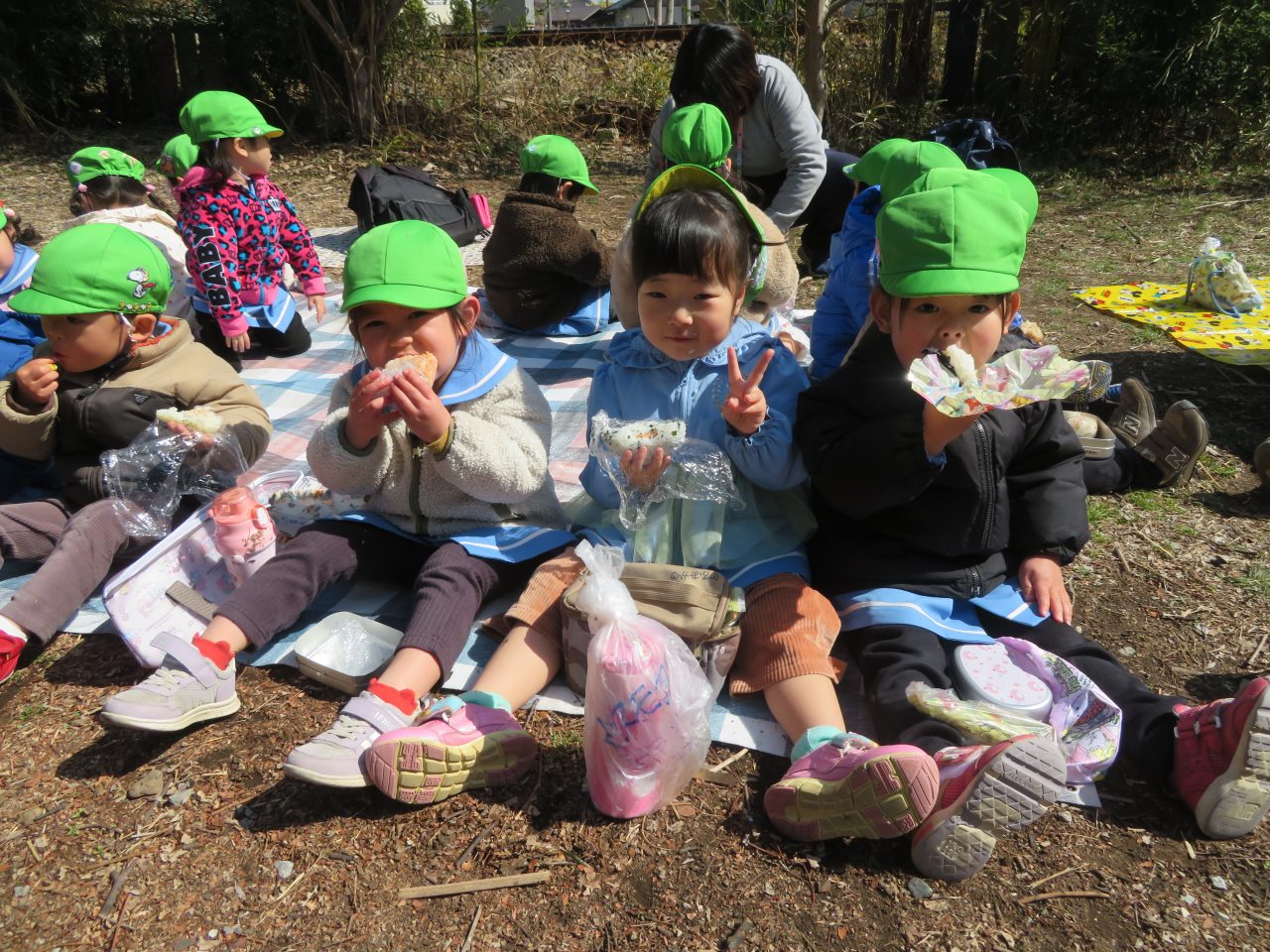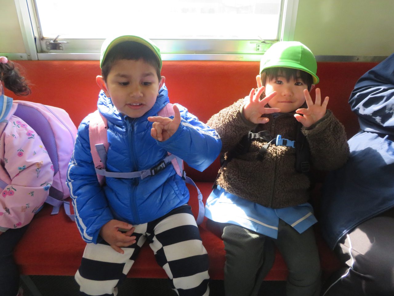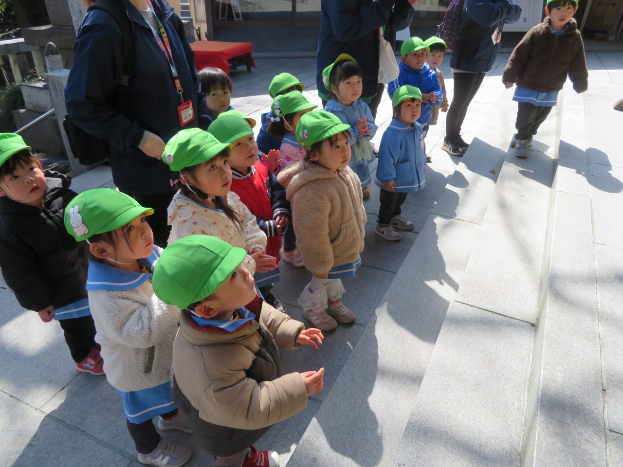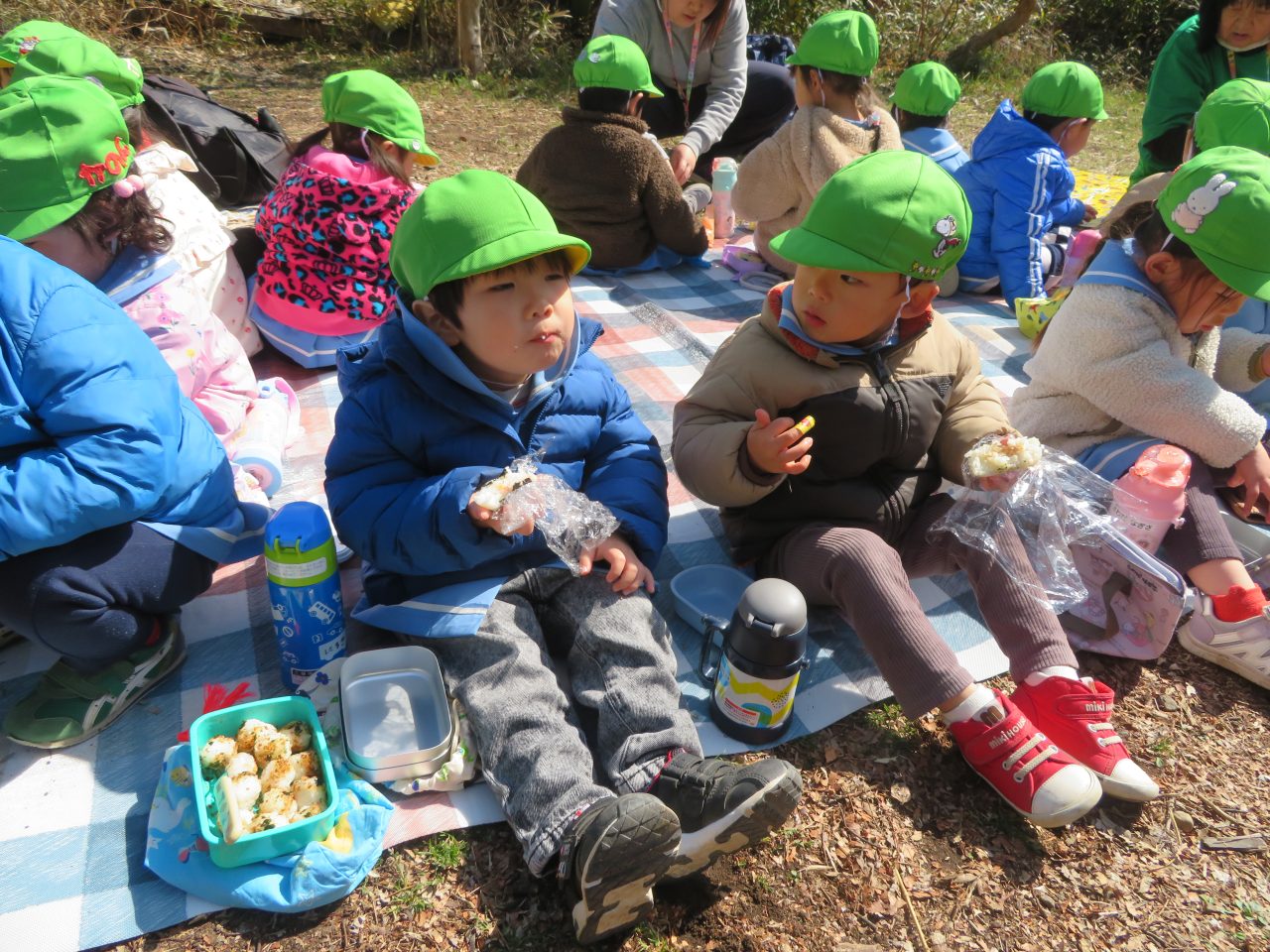 未満児のお別れ遠足でコスモス組は高崎市にある山名八幡宮まで電車で行ってきました!今日は園長先生とえり先生も一緒に行ってくれました!みんなで乗るのは三回目の電車でしたが、大喜びで車内を見たり、周りの風景を楽しんだり、お友達とお話をしたりしていた子どもたちです!今回の電車の中でも「電車って速いよね!」とお話もしていた子がいました😆神社ではお参りをしたり、散策をしたり、動物クイズを楽しみました!お昼はシートに座って電車を眺めながら、おにぎりやお菓子を食べました!おにぎりの用意ありがとうございました!ご飯の後に時間があったので集団遊びも楽しみました!帰りは瞬先生がバスで迎えに来てくれてみんなでバスに乗って帰ってきました、つかれて寝てしまうかと思いきやほとんどの子は元気で園まで起きていました😆お昼寝はぐっすりです!楽しい思い出ができて良かったです!今日、残念ながらお休みの子もいたので次は全員でお出掛けに行ければいいなと思います~