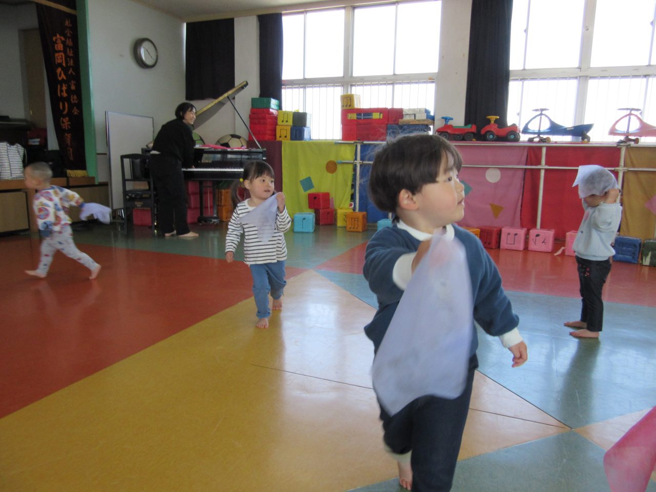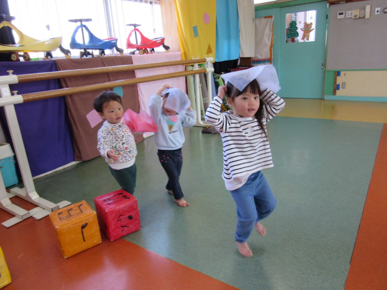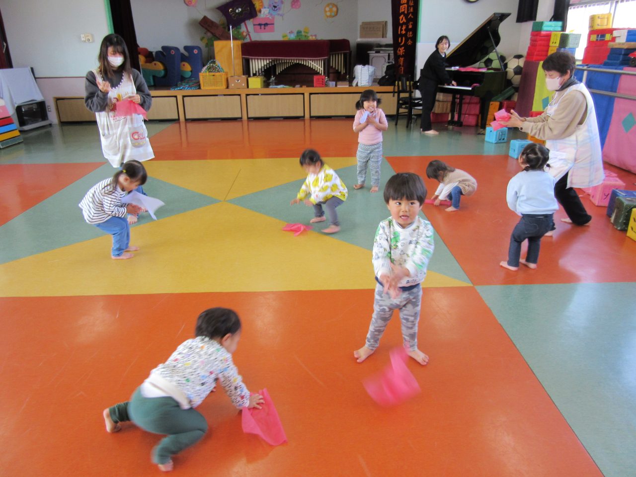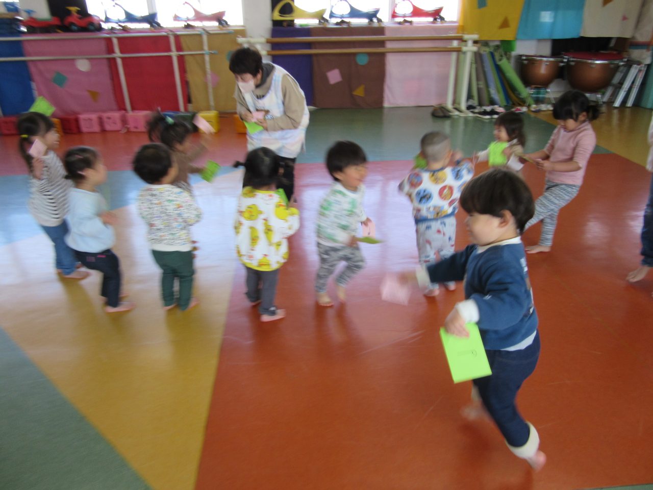 4月の頃は階段を登るのも大変でしたがこの一年でいろいろできるようになりびっくりしています。いろいろな表現が出来るようになりましたね。コスモス組でも沢山挑戦してほしいです😊