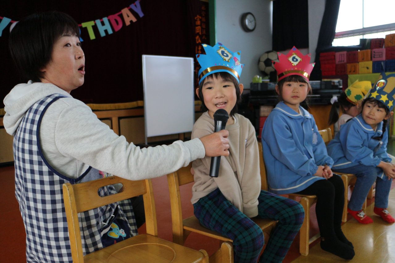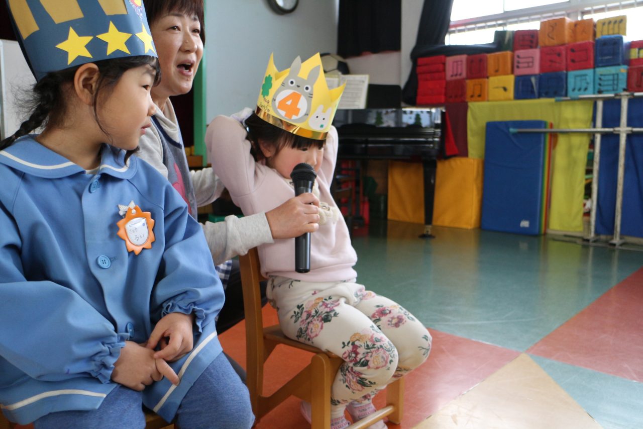 質問コーナーでは聞きたいことを考えて元気に聞くことができ、お誕生児のお友達も嬉しそうにいろいろな質問に答えていました!