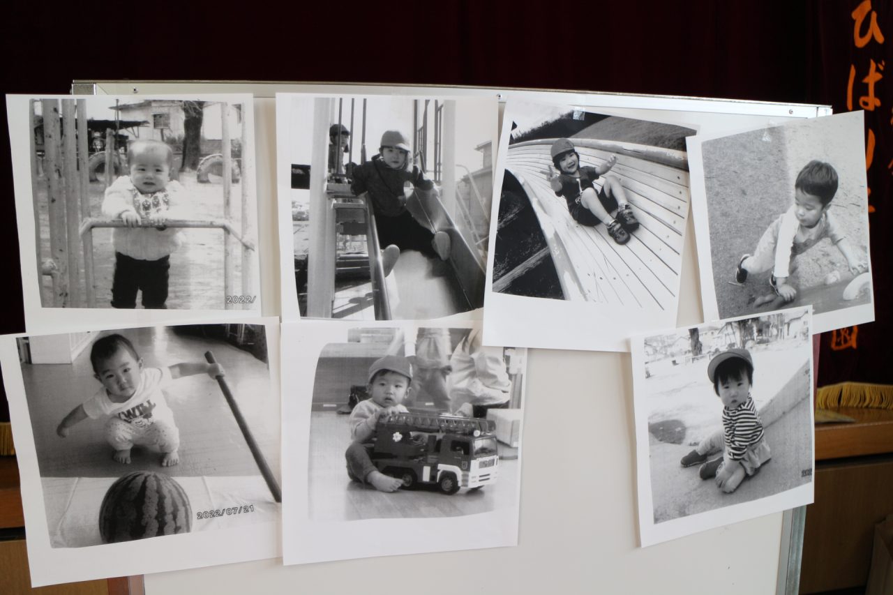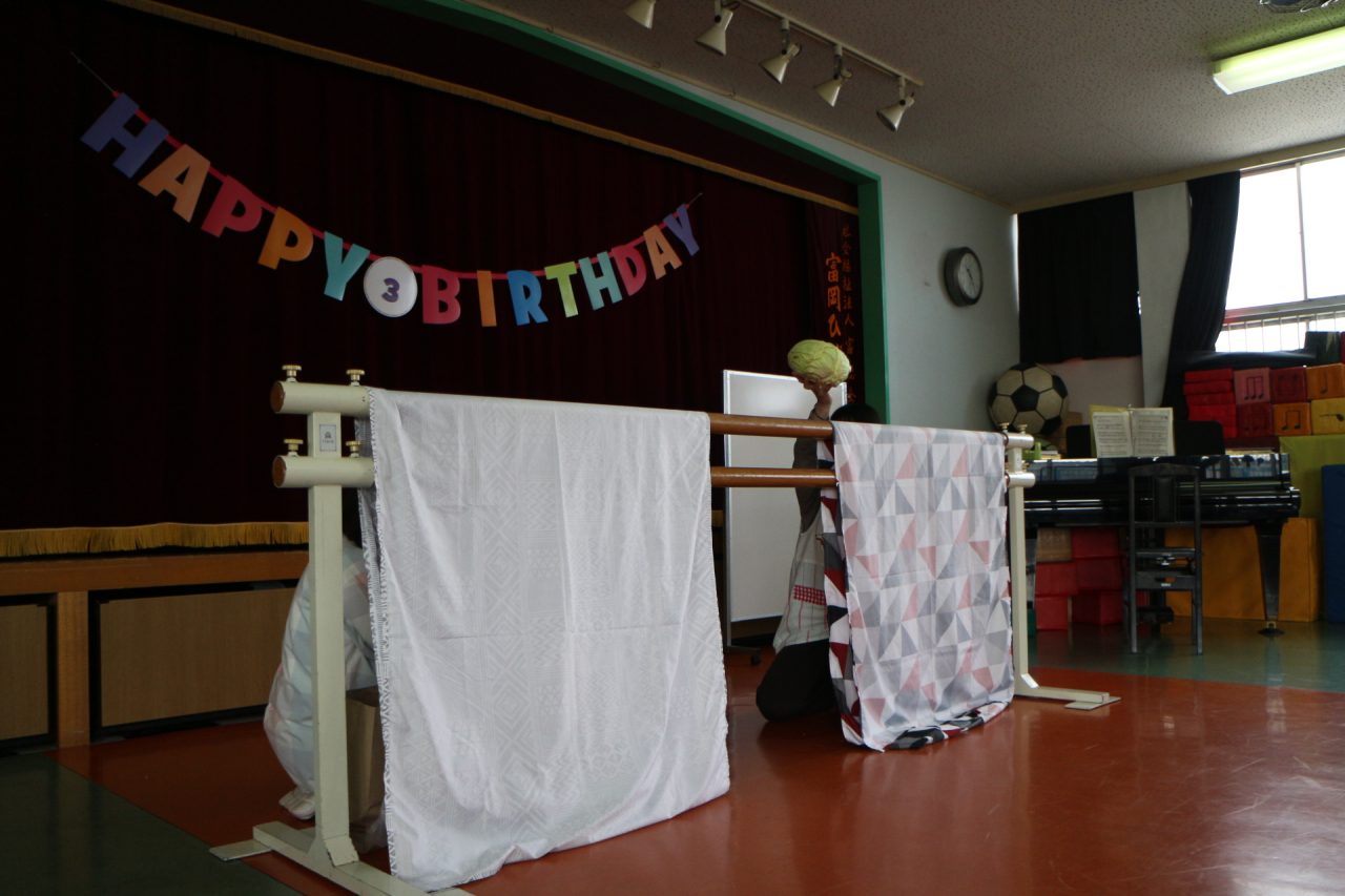 ゲームでは「なんだろうなゲーム」をみんなでしました。布と布の間を通るものをよく見て答える子どもたち👀なかなか早くて「もっとゆっくり!」とリクエストが飛びかっていました😊最後にはキャベツが飛んできてみんなびっくり!そして次は“もの”ではなく“ひと”に!誕生児のみんなの小さかったころ✨の写真を見てだれだかクイズをすることができました!
